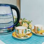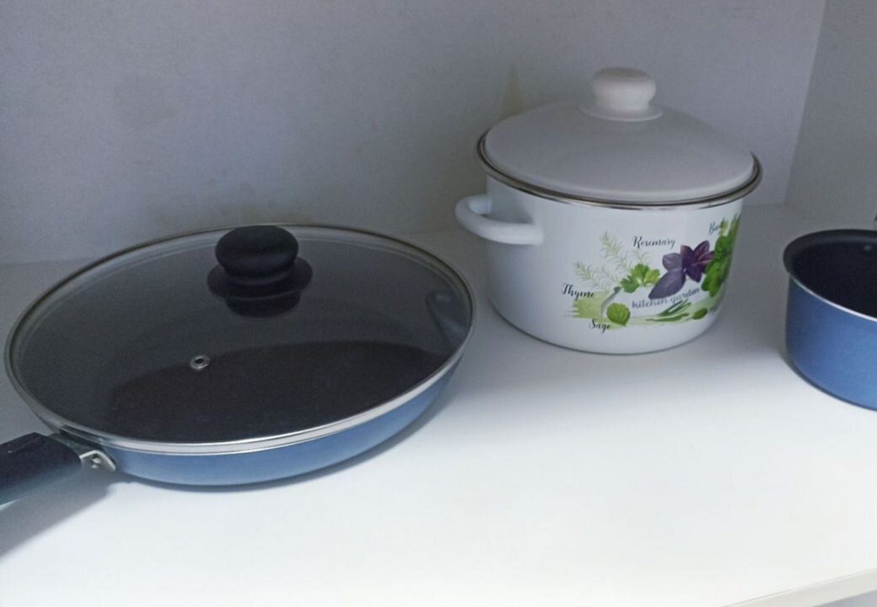 На уютной кухне есть все: от посуды и столовых приборов до духового шкафа, варочной панели, чайника и микроволновой печи. Таким образом, вы сможете готовить домашние блюда каждый день.