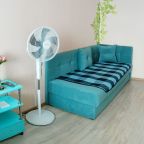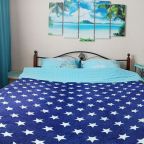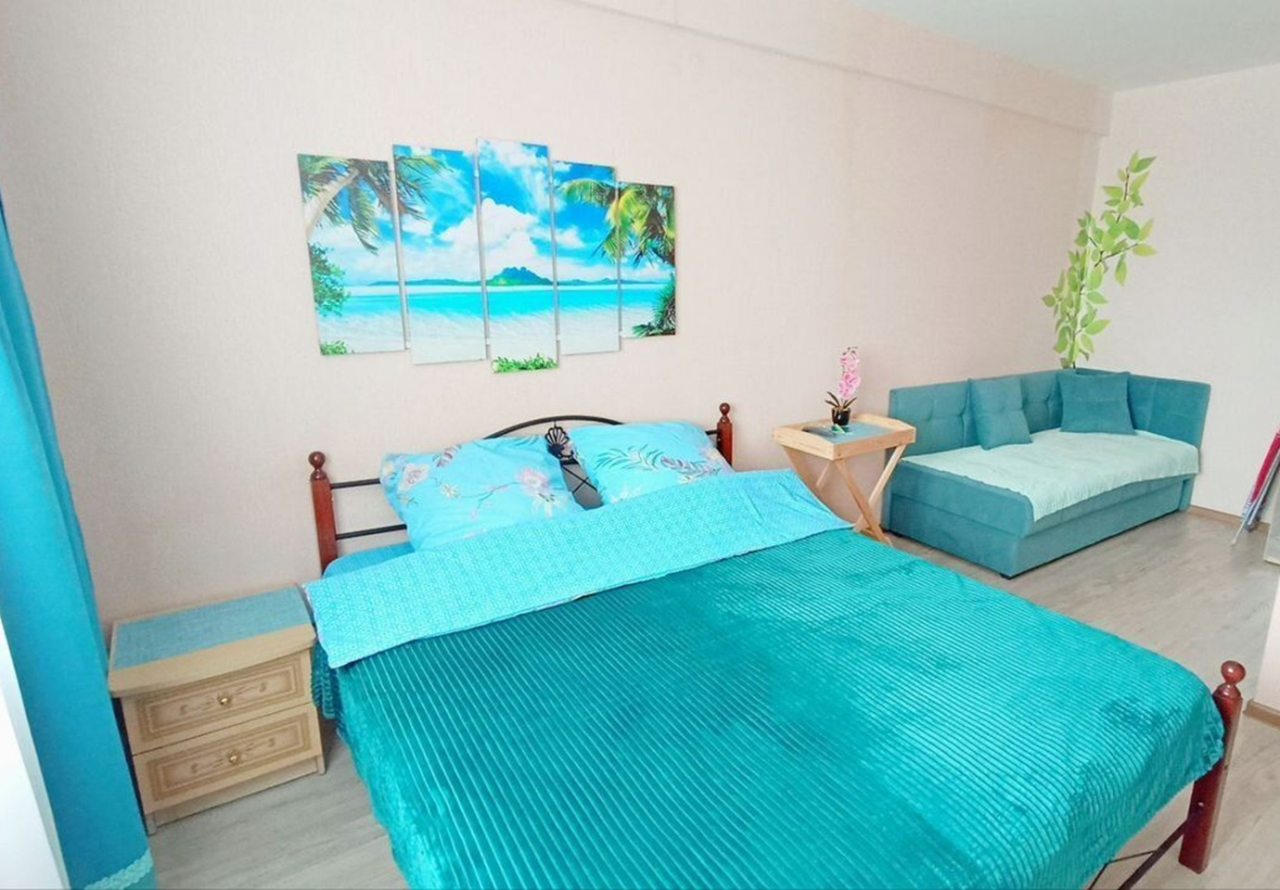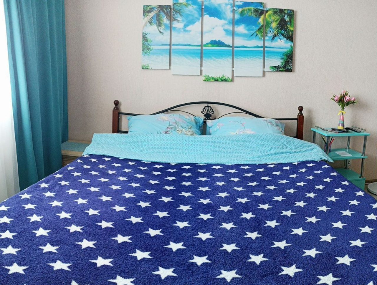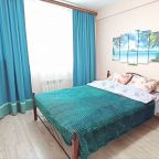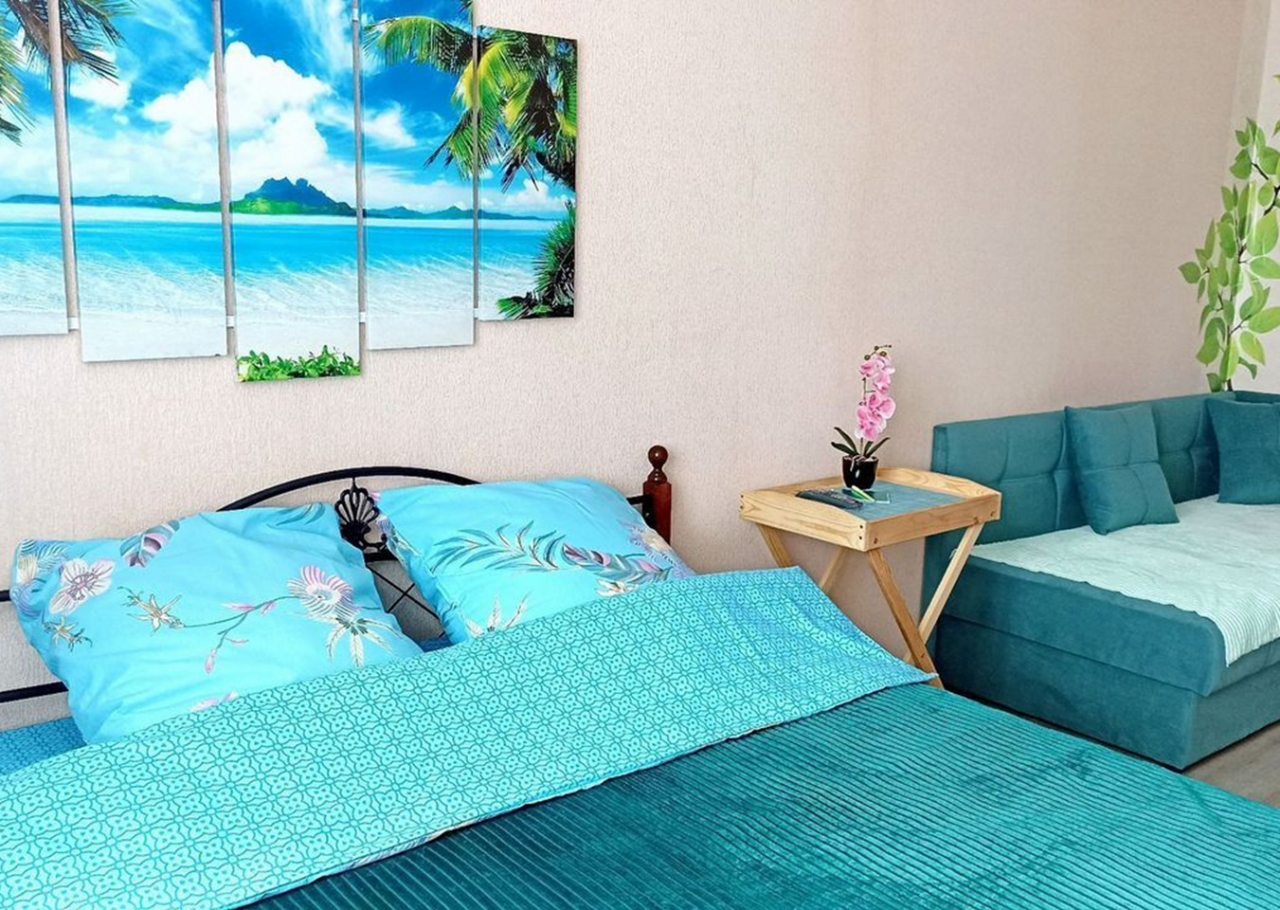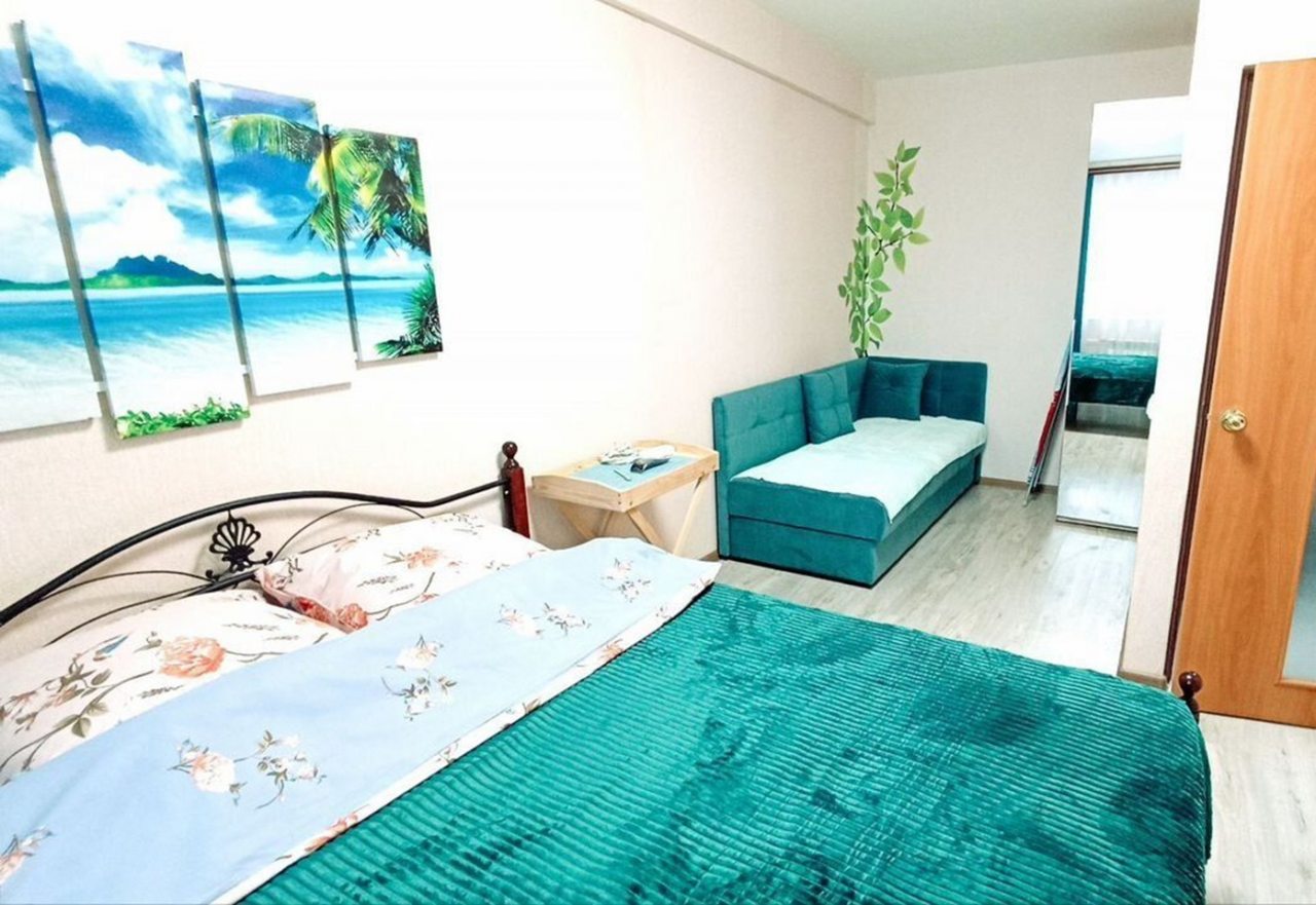 Внутри вы обнаружите все необходимое для отдыха и проживания, в том числе: двуспальную и односпальную кровати, телевизор, затемненные шторы, лоджию с панорамным остеклением, а также средства для личной гигиены, свежие полотенца, полноценную ванну в санузле.