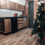 Кухня укомплектована электроплитой, электрочайником, холодильником, комплектом посуды, обеденным столом и др. Пообедать можно в одном из ближайших кафе.