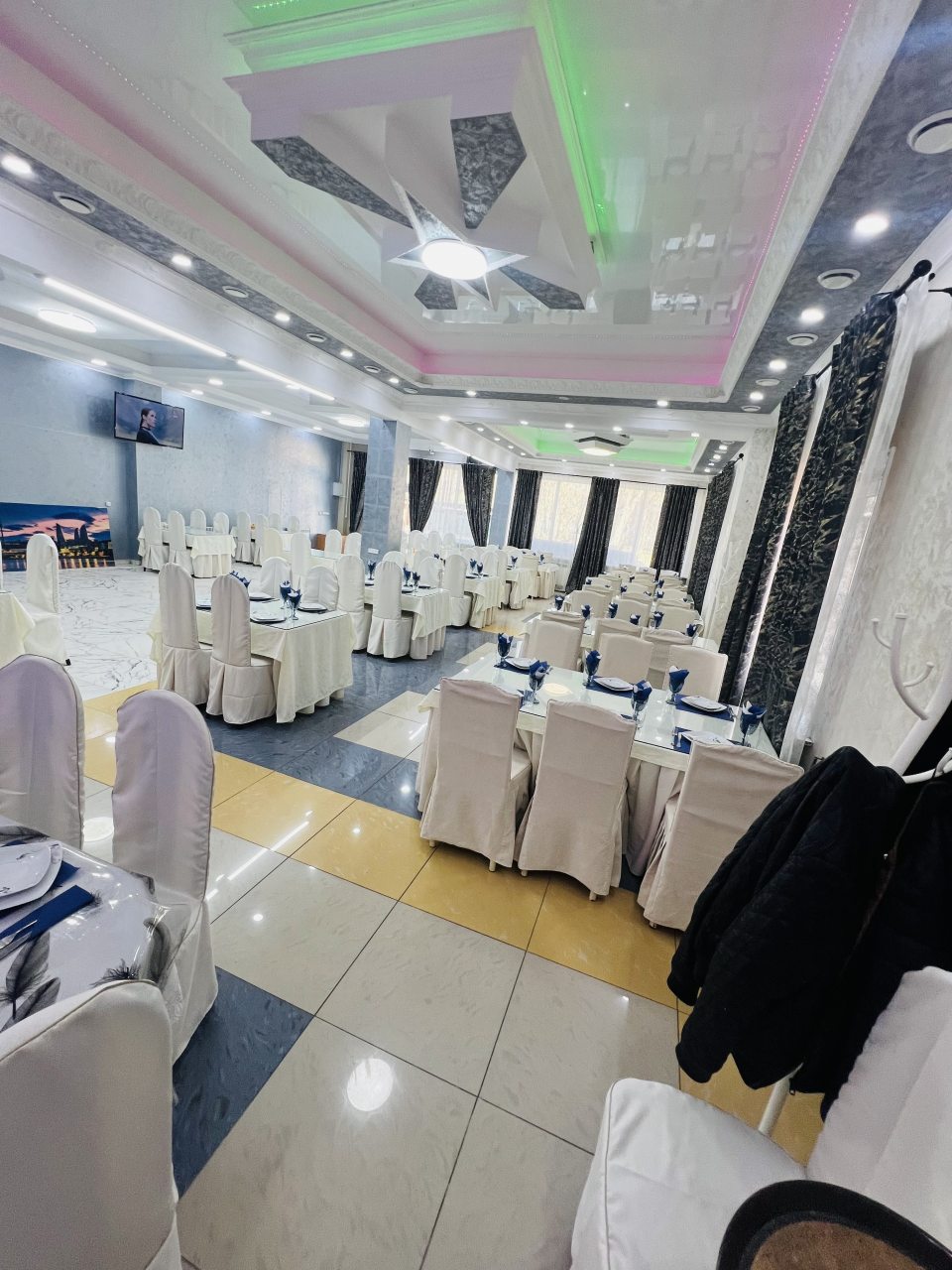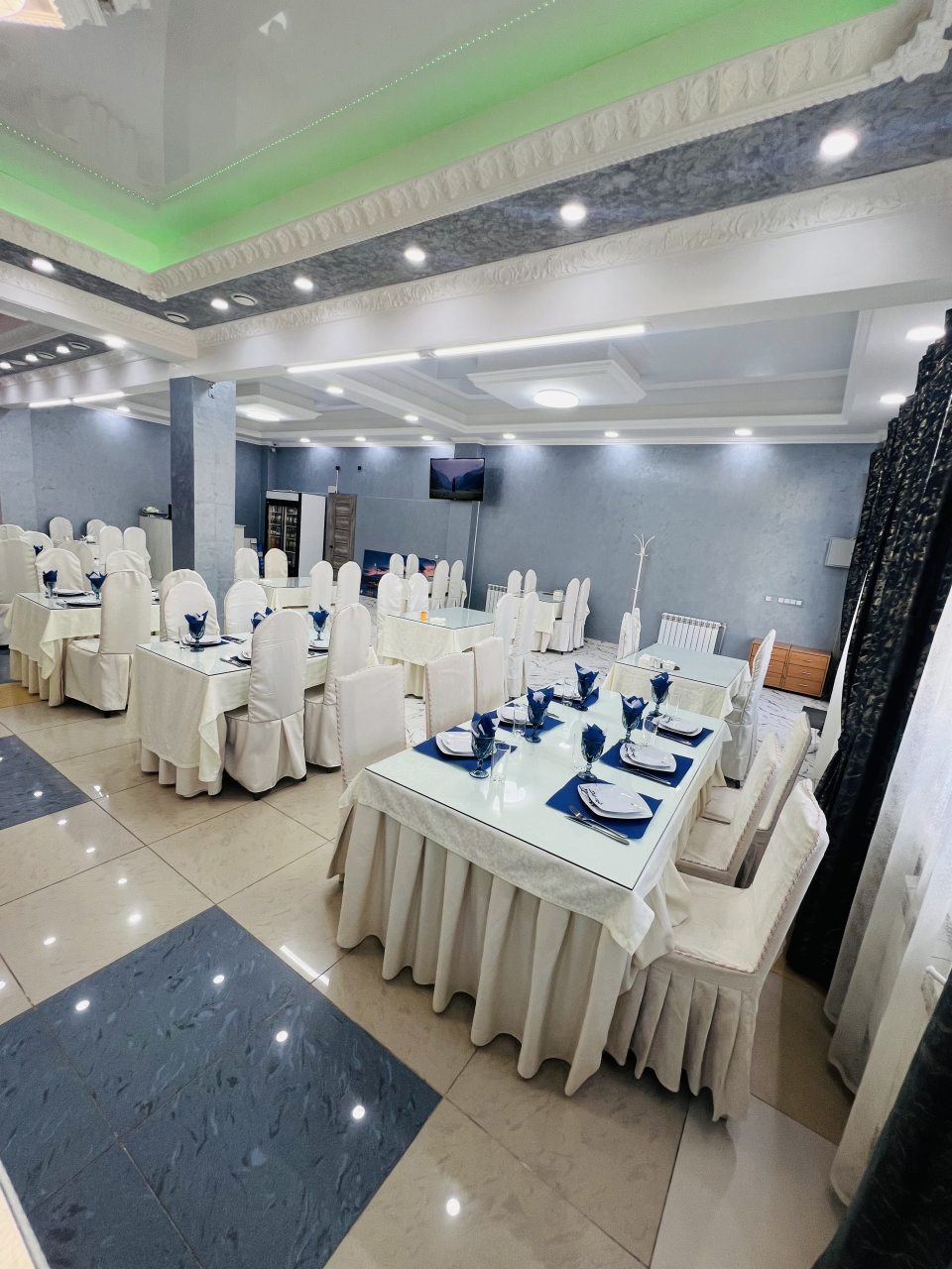 На первом этаже располагается кафе, где можно сытно и вкусно поесть, а также организовать торжественное мероприятие.