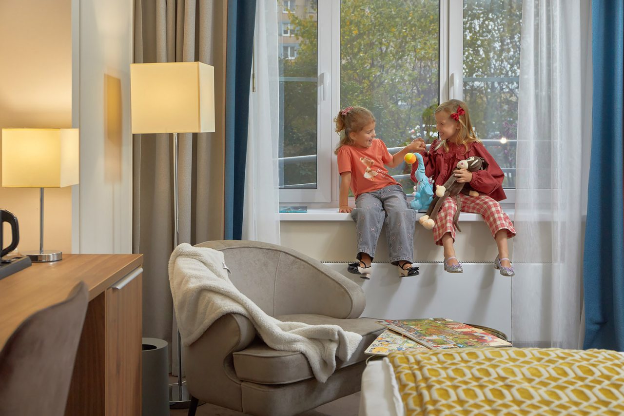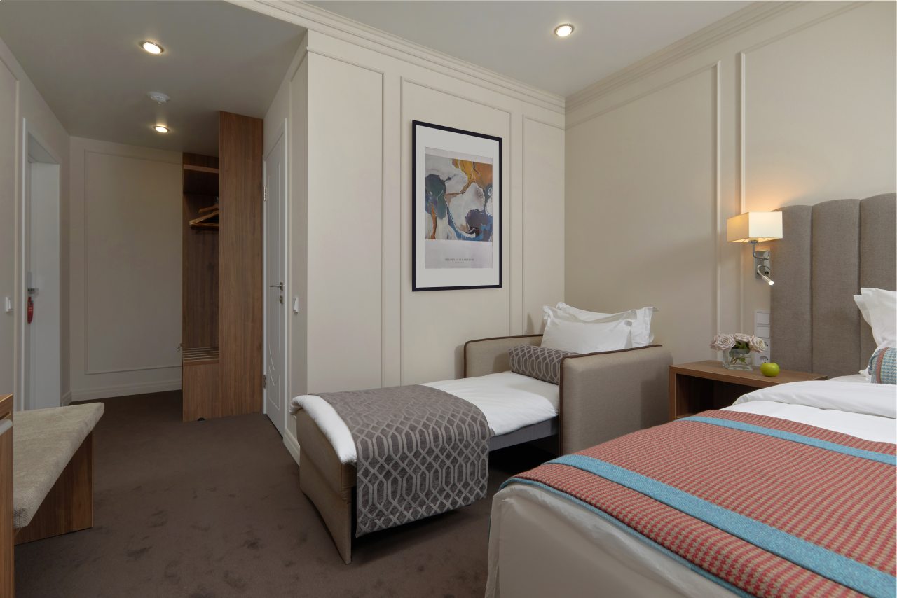 - От 3 лет могут спать на дополнительной кровати (по запросу) 2 000 руб. за человека за ночь.