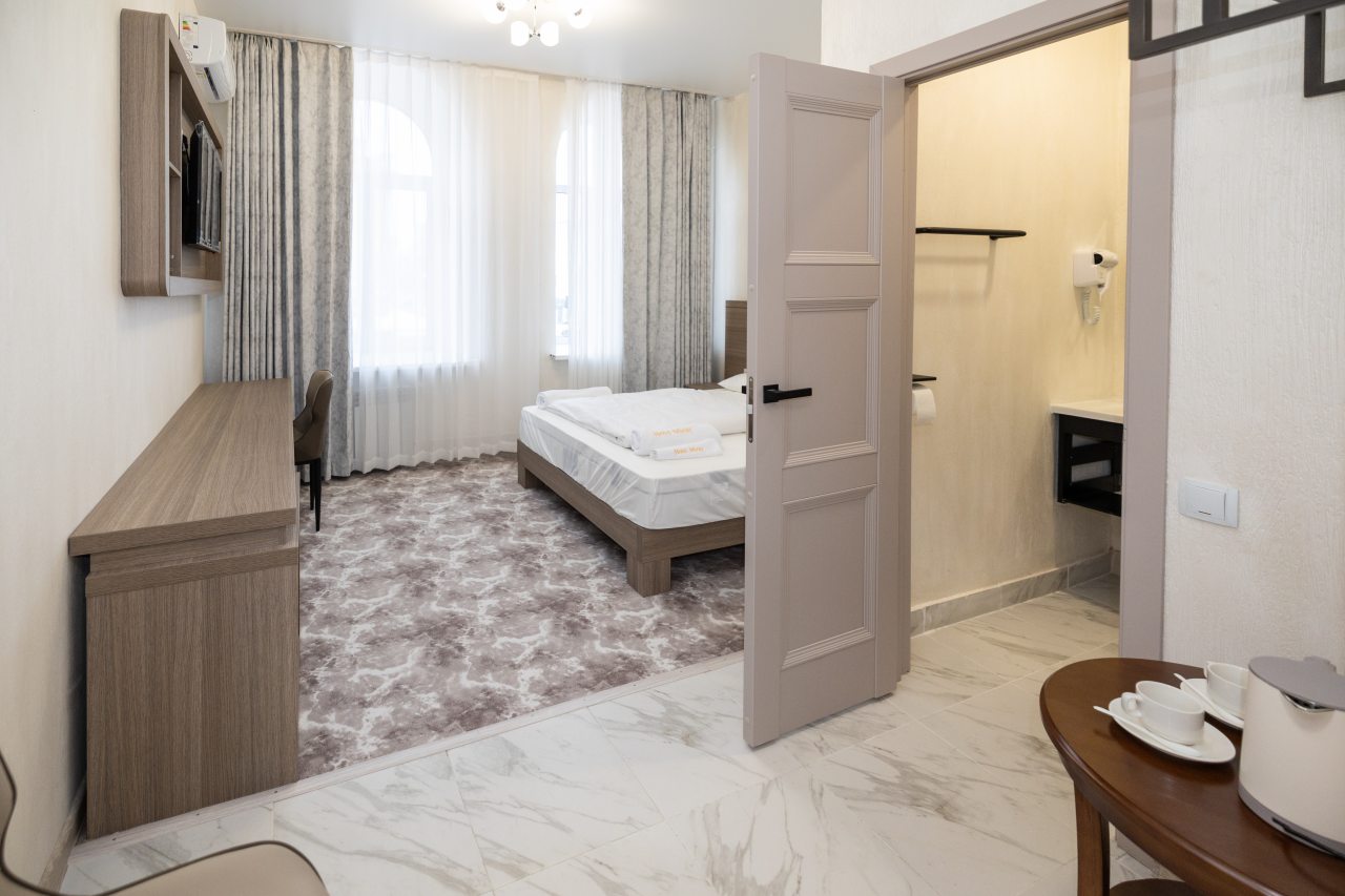 К размещению гостей предлагаются комфортабельны и уютные номера различных категорий: стандарт, де люкс, семейный. В каждом из них есть удобные спальные места, современная техника, мебель, собственная ванная комната с санузлом. Также к услугам постояльцев: доступ к сети интернет.