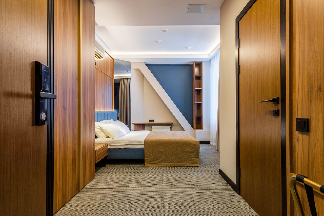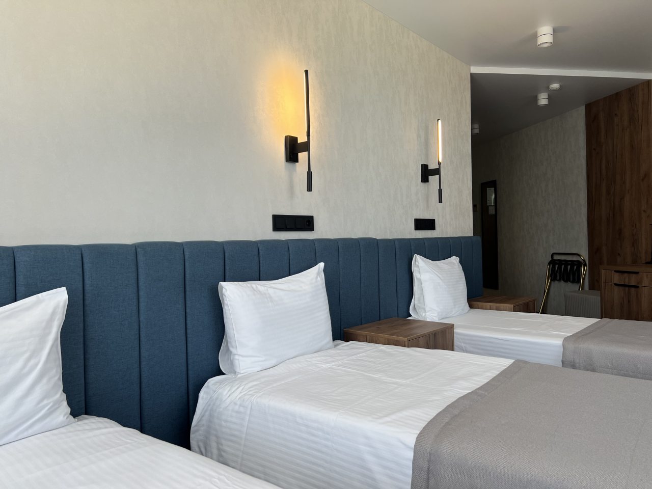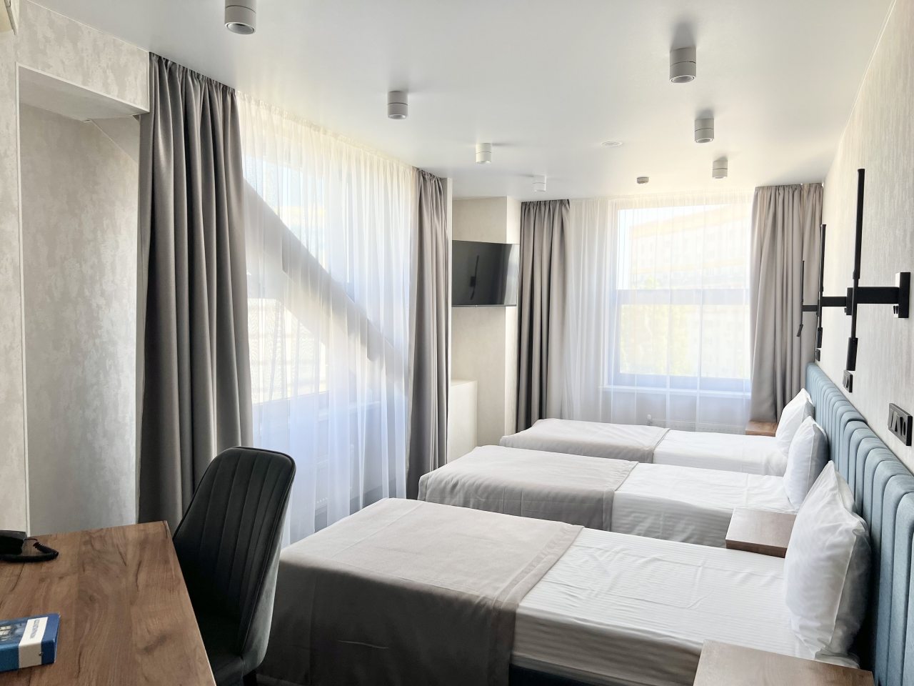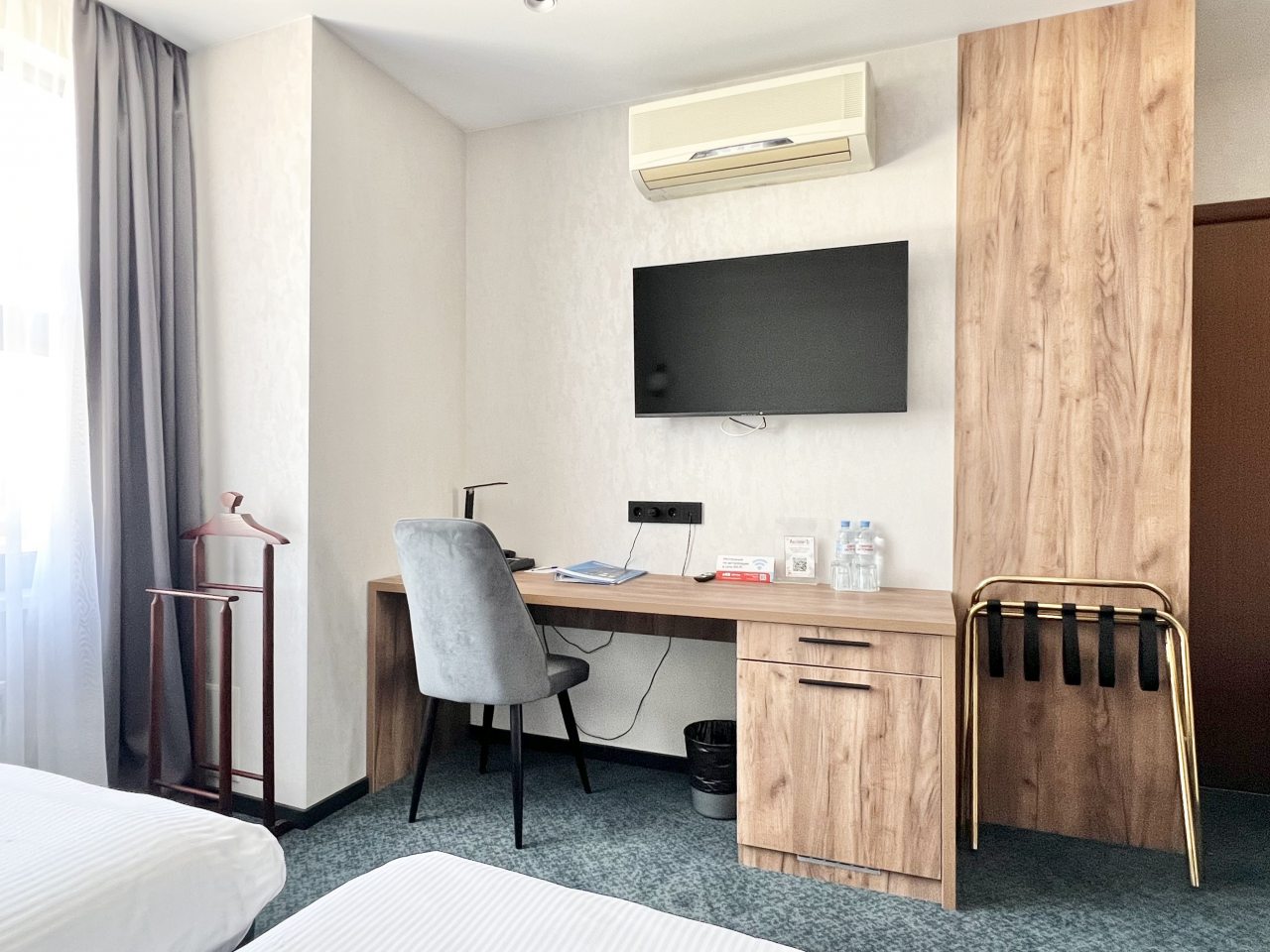 Отель расположен удобно, рядом торговый центр, метро, автобусные остановки. У отеля есть своя парковка. Рядом есть магазины шаговой доступности. Номер соответствует описанию, есть телевизор, кондиционер, холодильник. Персонал вежлив, номер убирали каждый день. В номере тихо, спалось прекрасно. Удобная кровать, хорошее пастельное белье. Завтраки присутствуют, в вполне себе хорошие завтраки, учтены многие предпочтения людей, в ресторане персонал вежлив, контролируют обстановку и быстро реагируют, хотелось бы их похвалить!