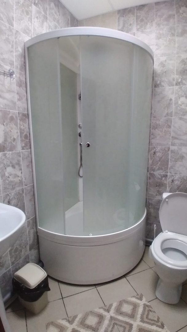 Из недостатков: в санузле отсутствует вытяжная вентиляция - совсем отсутствует, вследствие этого разбух косяк двери и она не закрывается до конца, а у входной двери косяк повело в другую сторону - образовалась щель в которую видно коридор и микроволновку (свободна ли она) .