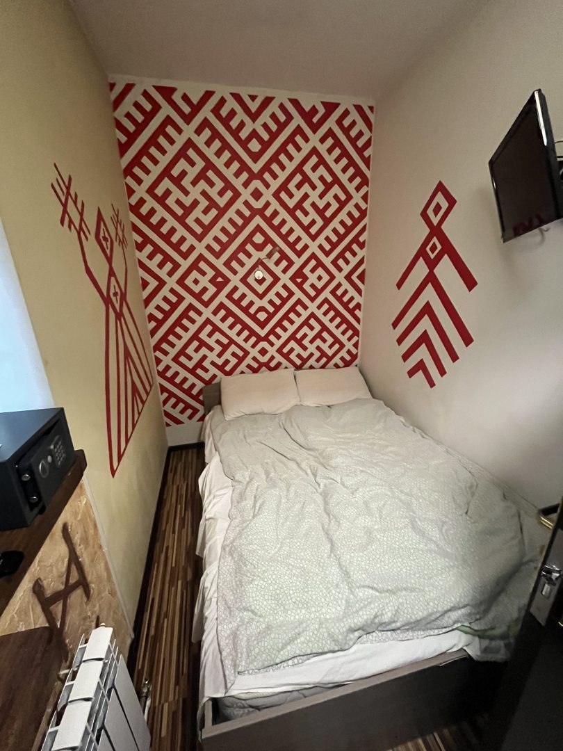 Останавливаясь в хостеле на 1 ночь, вчетвером, в номере Библиотека. Дочь-художница отметила интересное оформление каждого номера.Выспались, сыну не понравилась подушка, тут же сменили. Воспользовались кухней, вся техника работала, посуды достаточно. Много душевых кабинок, раковин для умывания, туалетов, очереди не было. Ездили в центр гулять на общественном транспорте, остановка близко.