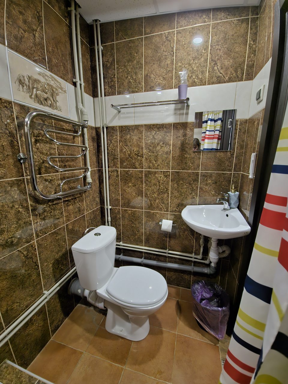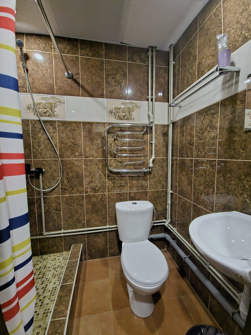 Из недостатков: хотелось бы побольше полотенец - их всего два - большое и меленькое, и коврик возле душа, вставать на плитку после душа холодновато.