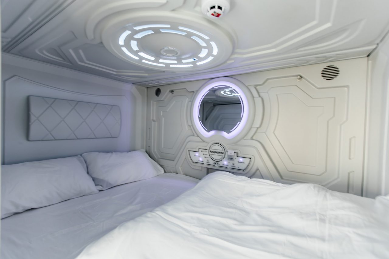 Очень милый и уютный хостел в стиле космоса. Заселялись на 2 ночи с 15 по 17 июля 2025 г. Капсулы аккуратные и чистые, вместительные, есть кондиционер. В коридоре есть ящики для хранения, которые закрываются на ключ, можно оставить вещи там. Туалет и душ чистые, в хостеле выдают полотенце,которое сдаешь при выселении. Кухня чистая и аккуратная, есть холодильники, чайники, микроволновка, обедененная зона. С момента нашего прибытия мы были приятно удивлены дружелюбным и отзывчивым персоналом.