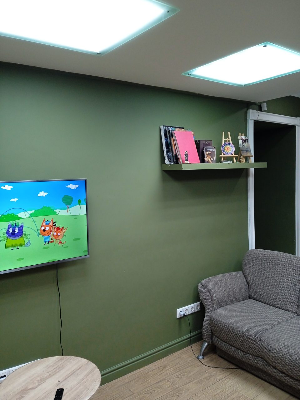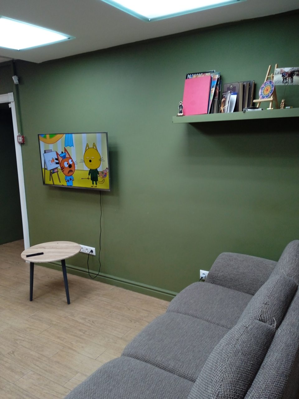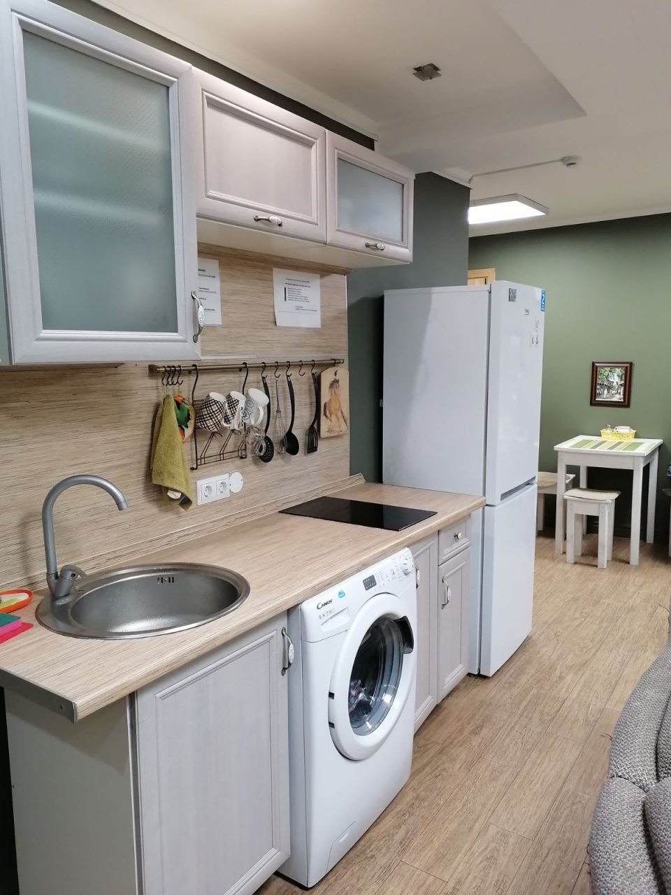 На общей кухне установлена необходимая техника, в том числе электроплита и холодильник, а также посуда и обеденные места. В 0,2 км есть кафе «Донна Пицца».