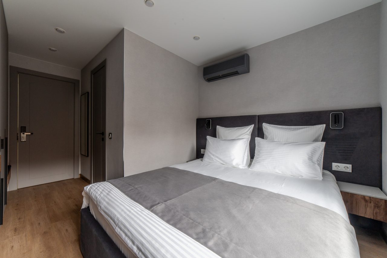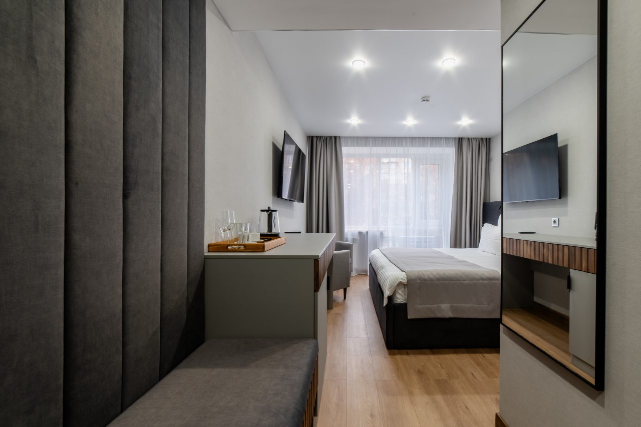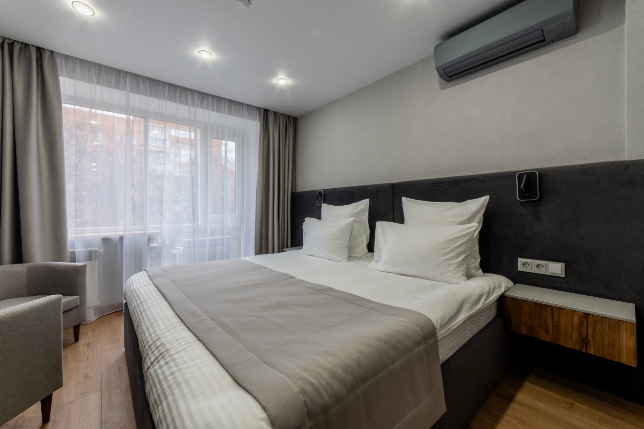 Для проживания предлагаются 17 комфортабельных номеров с современным ремонтом и качественной шумоизоляцией, оборудованные удобной кроватью с чистым постельным бельем, прикроватной мебелью, розетками возле кровати, кондиционером, затемненными шторами и телевизором. Стильный санузел укомплектован необходимой сантехникой, зеркалом с подсветкой, феном, гигиеническими средствами. Доступна точка высокоскоростного интернета и спутниковое телевидение.