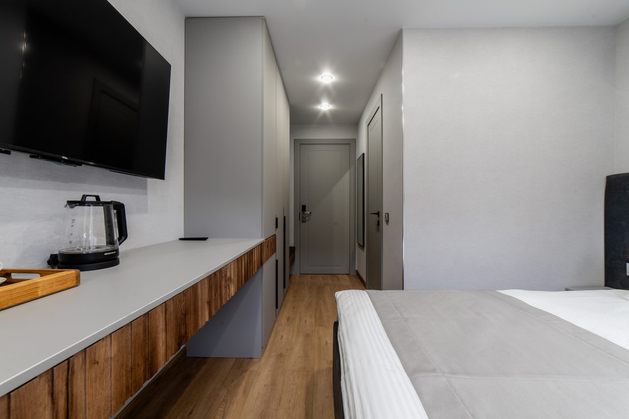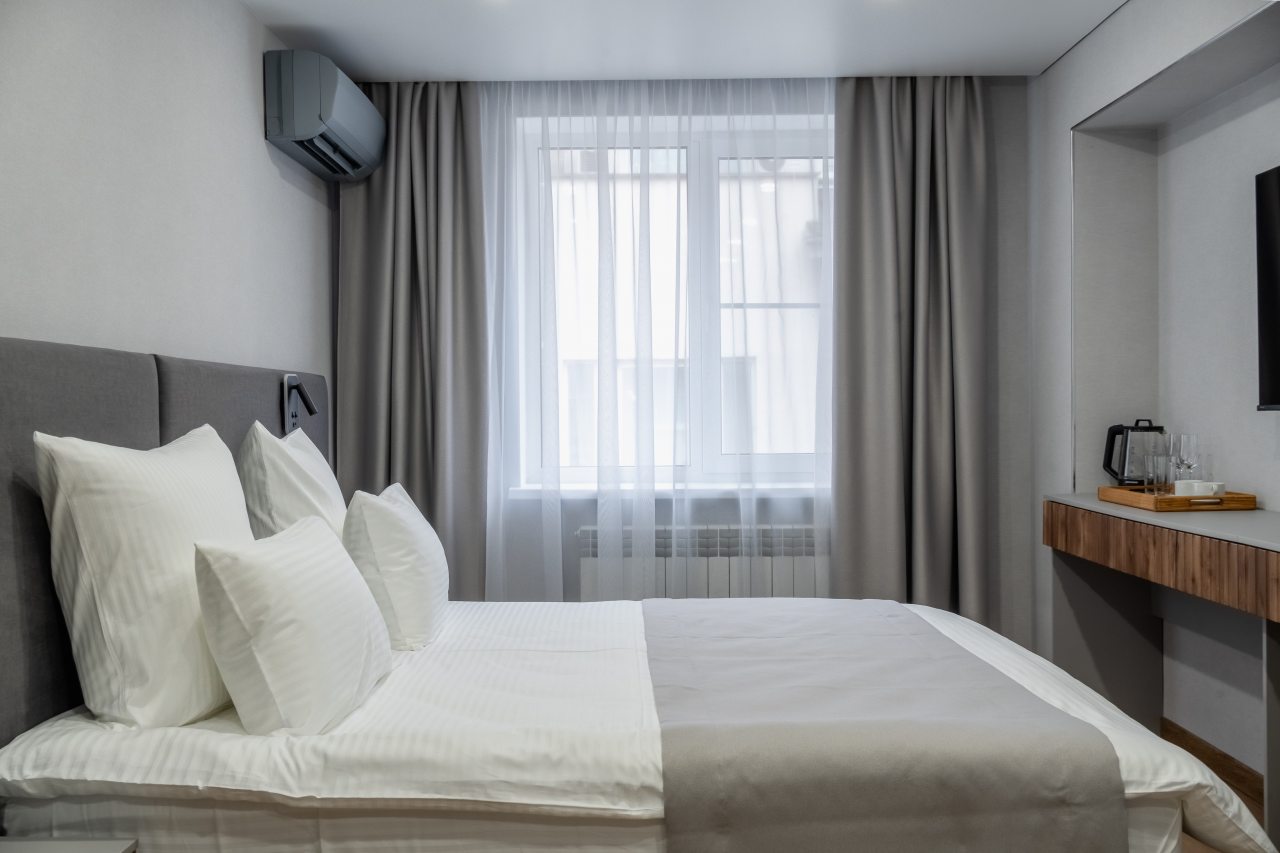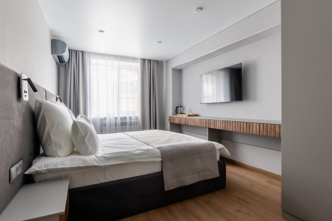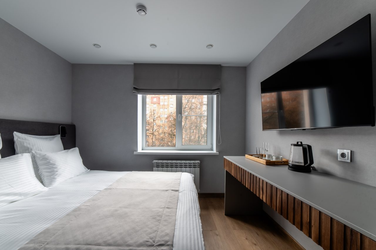 Для проживания предлагаются 17 комфортабельных номеров с современным ремонтом и качественной шумоизоляцией, оборудованные удобной кроватью с чистым постельным бельем, прикроватной мебелью, розетками возле кровати, кондиционером, затемненными шторами и телевизором. Стильный санузел укомплектован необходимой сантехникой, зеркалом с подсветкой, феном, гигиеническими средствами. Доступна точка высокоскоростного интернета и спутниковое телевидение.