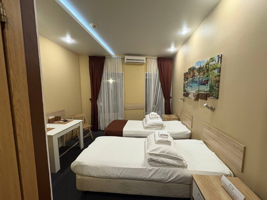 Мы с дочкой две ночи провели в отели. Нам очень понравилось. В номере чисто, уютно. Главное, туалет и душ в номере, не надо бегать по этажу и ждать, именно такой вариант я искала для отдыха с ребёнком. В номере есть и телевизор, и микроволновка для разогрева еды. Администраторы приветливые.