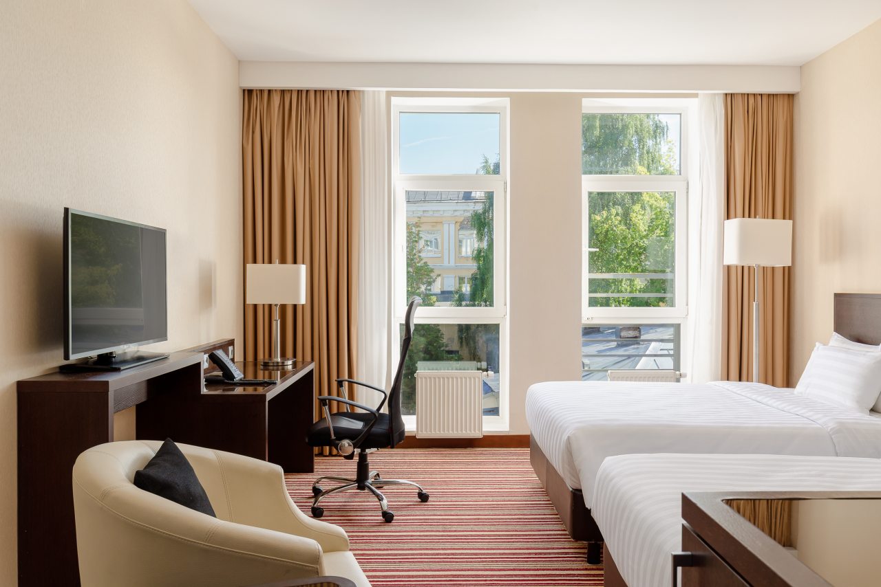 Для проживания предоставляются номера, выполненные в различных категориях. Комнаты выдержаны в европейском сдержанном стиле и приятной цветовой гамме, каждая из которых обставлена необходимым набором мебели и техники.