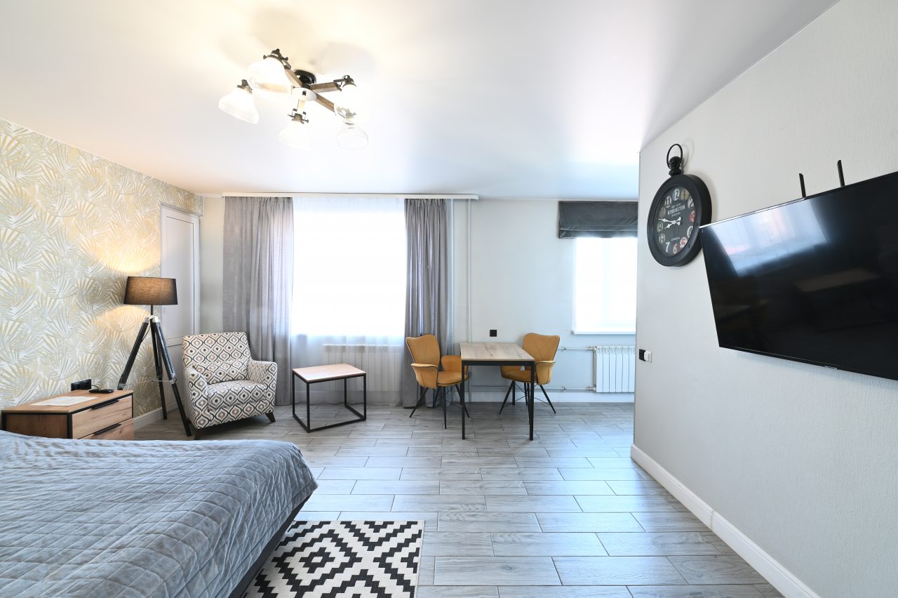 Очень классная квартира. Свободная просторная, при этом теплая, обжитая какая-то. Вся сантехника чистая, не ржавая, пол теплый, в целом, вся техника новая, современная, приятно пользоваться. Совершенно случайно выбрал эти апартаменты и ни разу не пожалел.