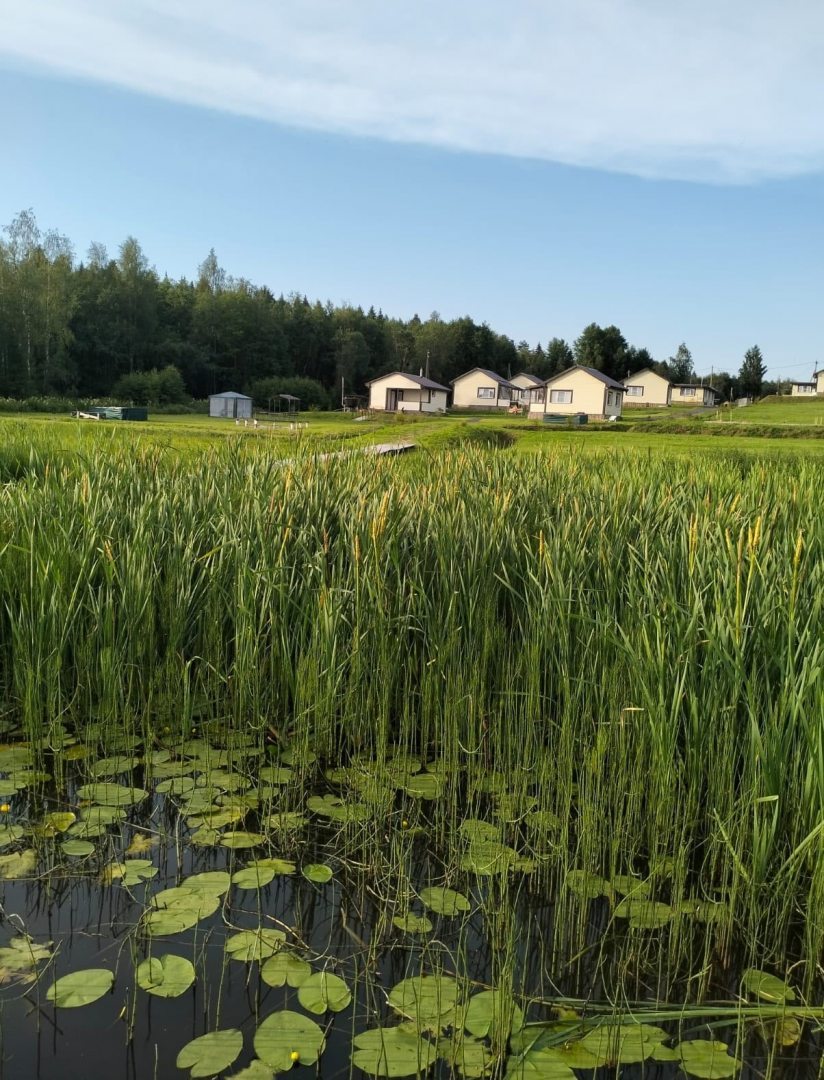 База находится рядом с озером, на открытой местности, возможно, в жару мало тени, но мы были мобильные , и ездили по окрестностям, где много лесных озер. Вечером и рано утром купались на озере на базе. В магазины ездили в Олонец. В окрестных лесах собирали чернику и грибы. Сап был свой, но можно брать в прокат. Озеро мелкое и илистое дно , около понтона отсыпано дно, а дальше ил. До рыбы у нас не дошло, но соседи при нас с понтона ловили мелких рыбешек . Мы снимали 2 домика и номер в гостинице. Кондиционеров нет, есть вентилятор. Было жарковато , но мы попали в +30. В котеджах и номерах есть все для отдыха: посуда, белье, полотенца, гигиен. наборы, фумигаторы...