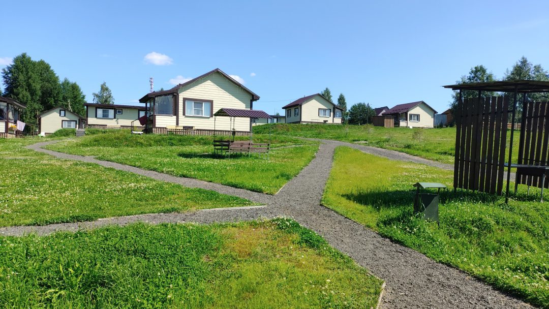 Домики уютные, всё внутри деревянное, приятно пахнет свежим деревом. Есть мангальные зоны, костровище и качели. Рядом лес, можно собирать грибы. Хорошо оборудована территория, безопасно и для детей. Вечером тишина, звёзды видно как на ладони.
