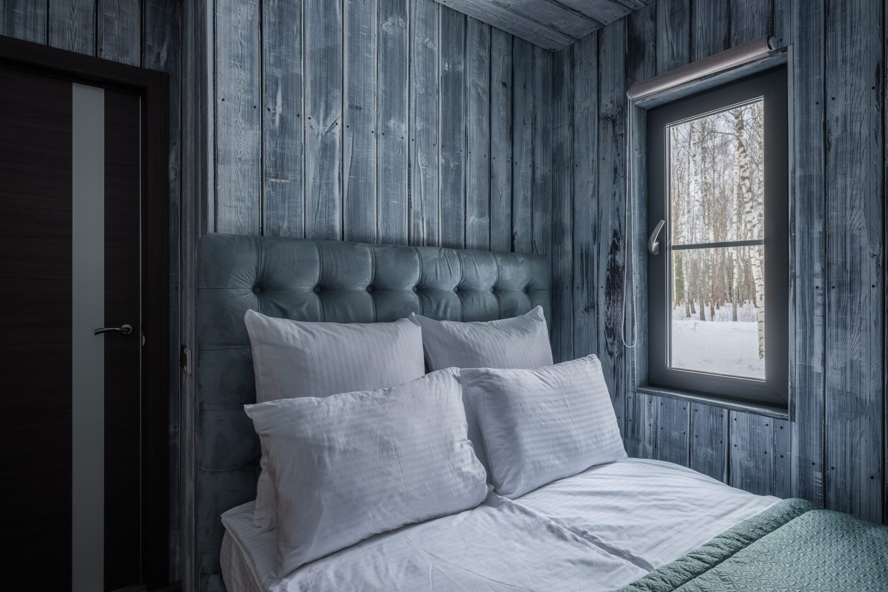Для гостей подготовлены минималистичные домики со скандинавским дизайном. В каждом из них удобные спальные места, бесплатный доступ в интернет, индивидуальный санузел с необходимой сантехникой.