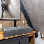 Просто замечательная база отдыха. С современным и стильным дизайном, качественной мебелью и техникой. Все удобства в домике были действительно предусмотрены. Природа вокруг очень красивая, мы с мужем вдоволь нагулялись. У нас был домик с купелью. Это полный восторг. Купались днем и ночью, глядя на звездное небо. Рекомендуем это место всем, кто устал от городской пыли и шума. Тут настоящий оазис спокойствия. Благодарим.