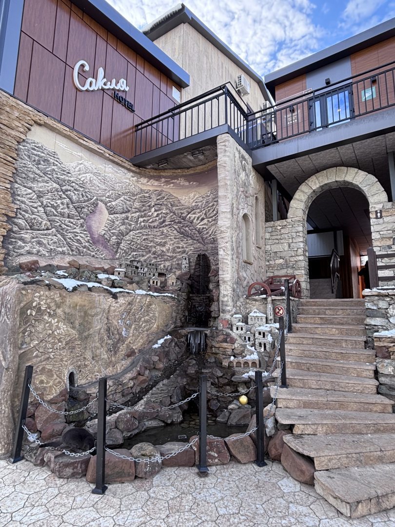 Удобно расположен. Всё необходимое есть рядом. До смотровых недалеко. Вид из окна красивый на горы. Видно даже подвесной мост в пещере Нахъо. Персонал отзывчивый. Рядом ресторан, по нашим ощущениям - лучший в комплексе с видом на речку