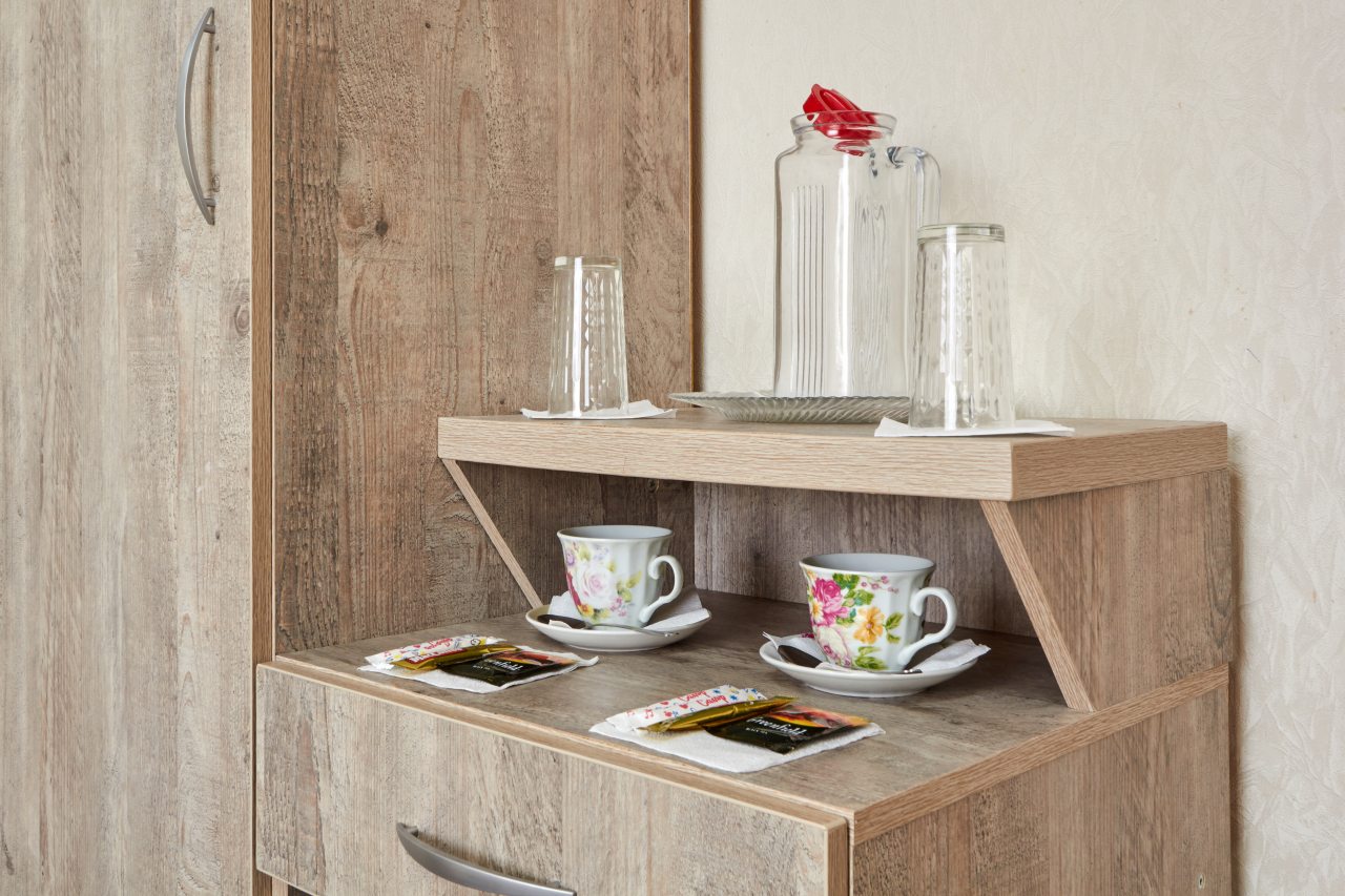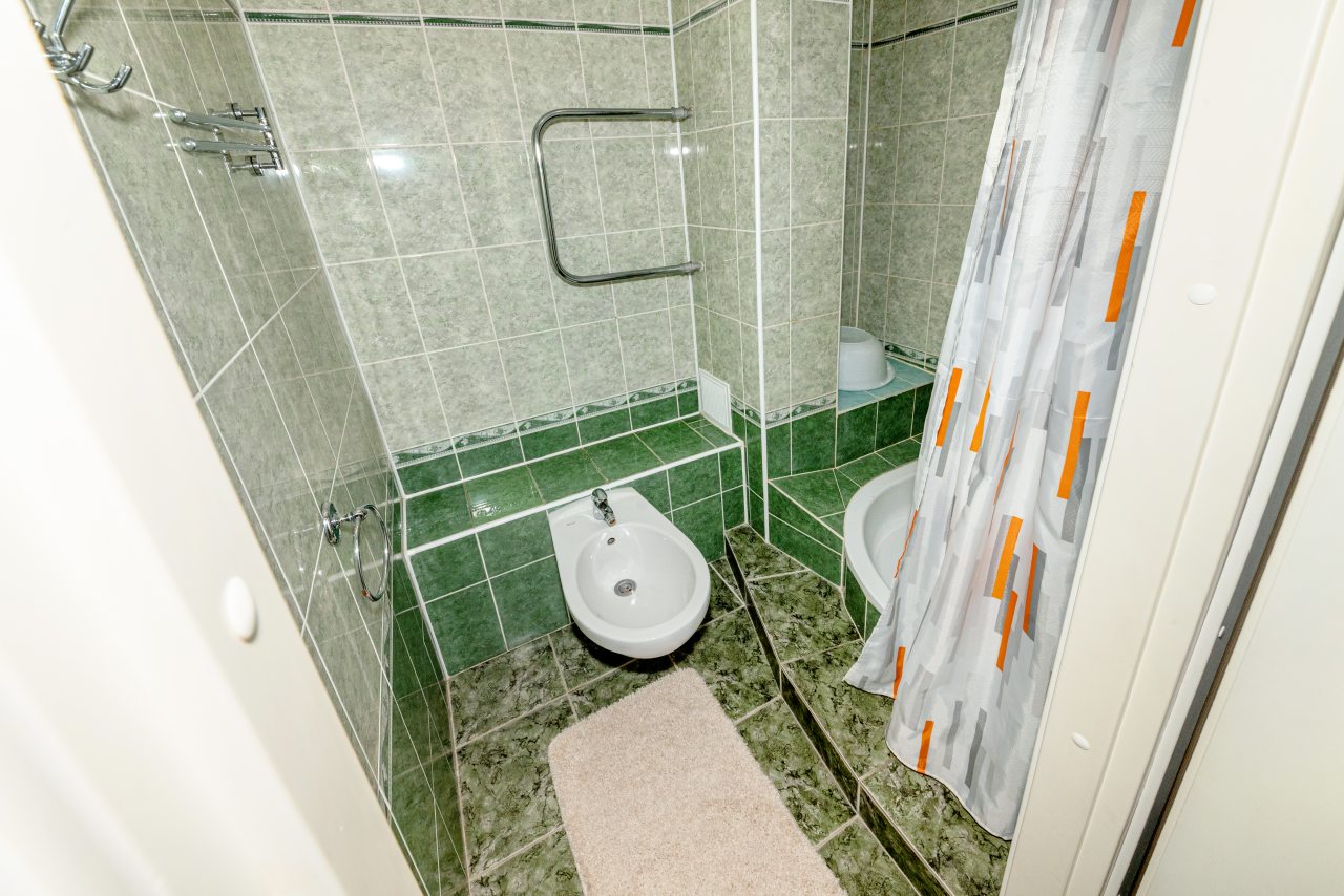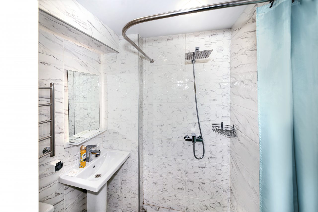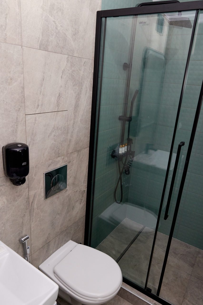 Для выбора представлены номера различных категорий. В каждом — удобная для сна кровать, шкаф, телевизор, набор полотенец, а также собственный санузел с душем, туалетом, раковиной и средствами для гигиены.