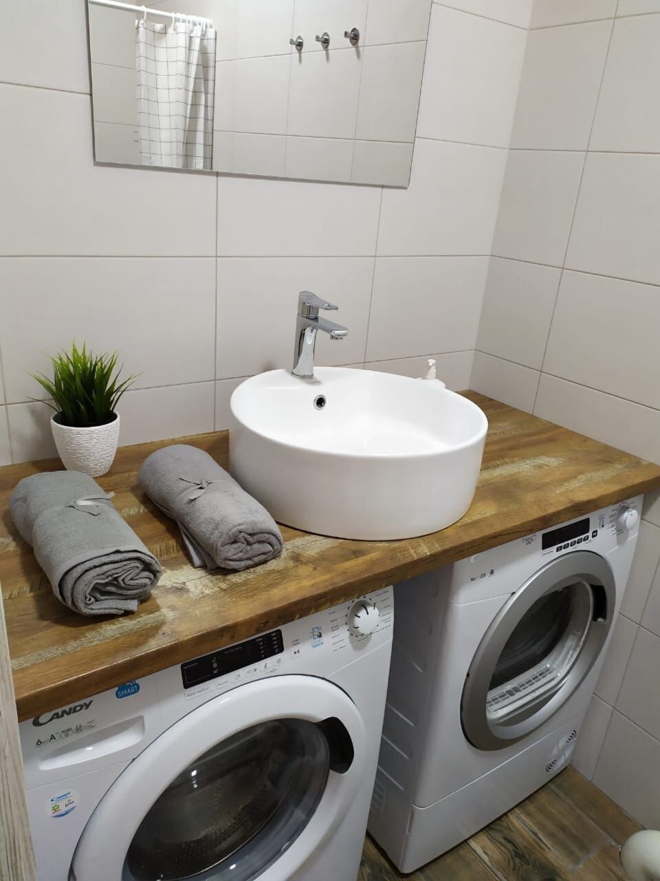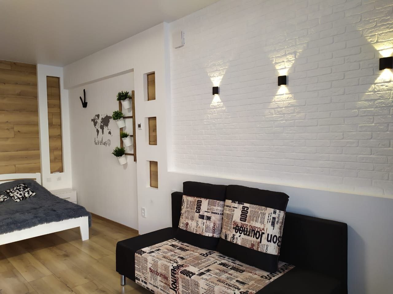 Для комфортного проживания и отдыха имеется двуспальная кровать с удобным матрасом, диван с телевизором, затемненные шторы, разнообразные источники освещения, санузел с душем, стиральной машиной и полотенцами.