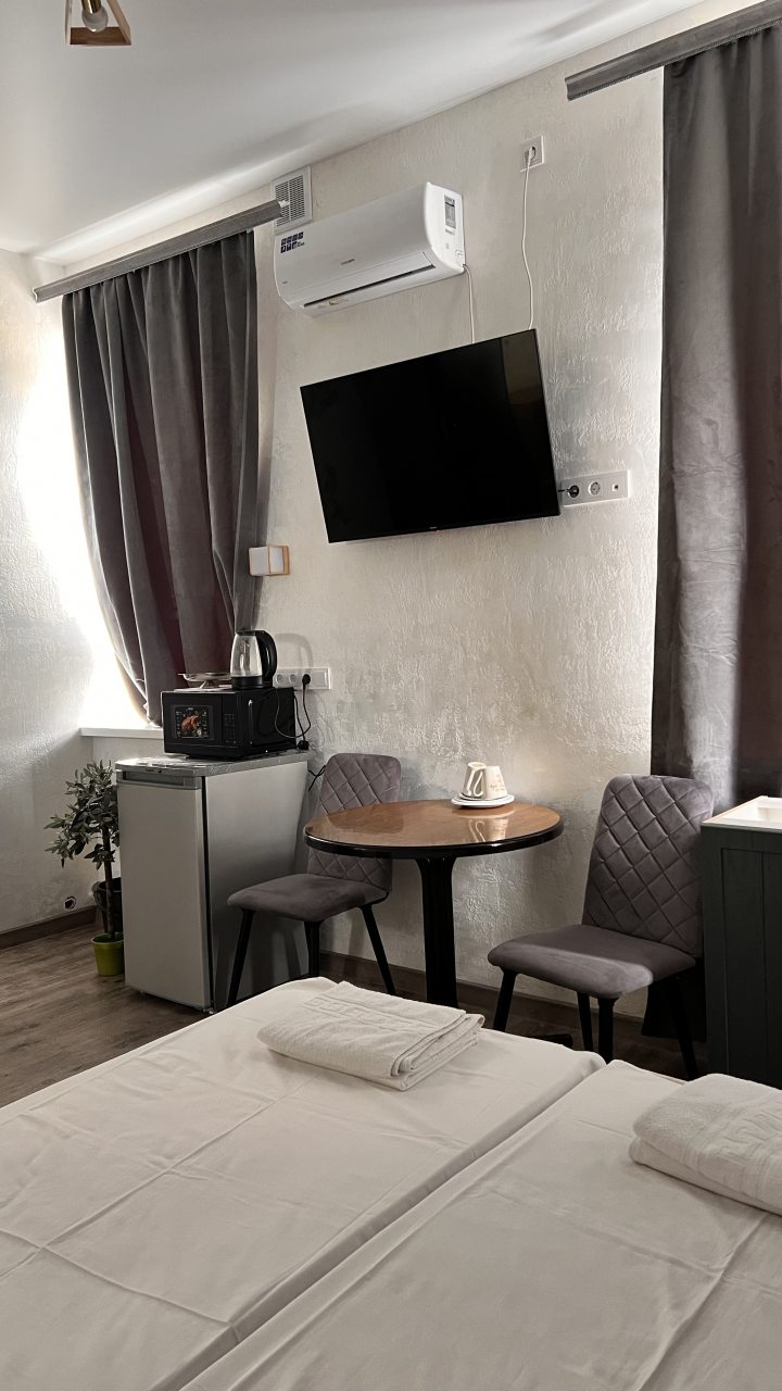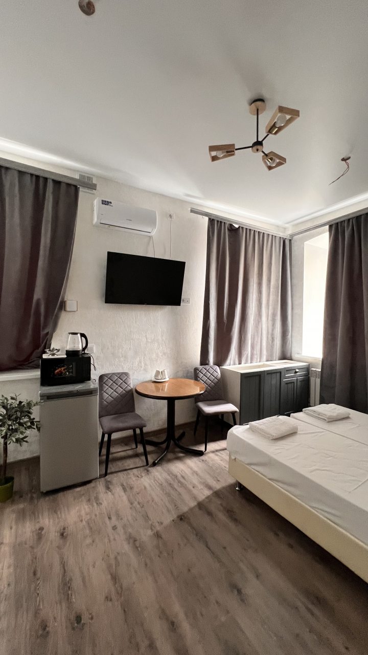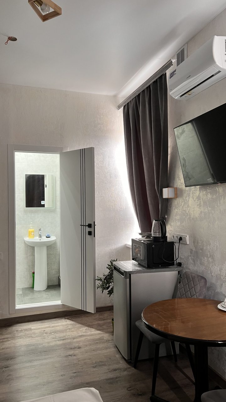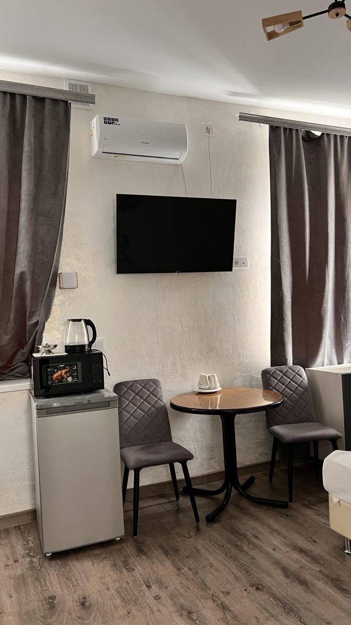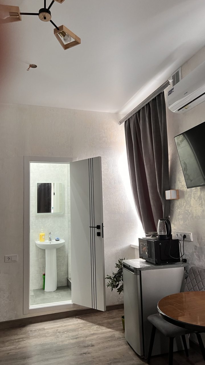 В Новочеркасске был проездом, мне необходимо было где-то остановиться на несколько дней, пока решал рабочие дела. На удачу попались апартаменты с малой площадью. Оказалась очень удобно, но только дешевле, чем в отеле. Все удобства в этой небольшой уютной квартирке предусмотрены. Даже есть небольшая кухня, где можно и чайник поставить, и яичницу пожарить. Душ с хорошим напором. Все отлично!