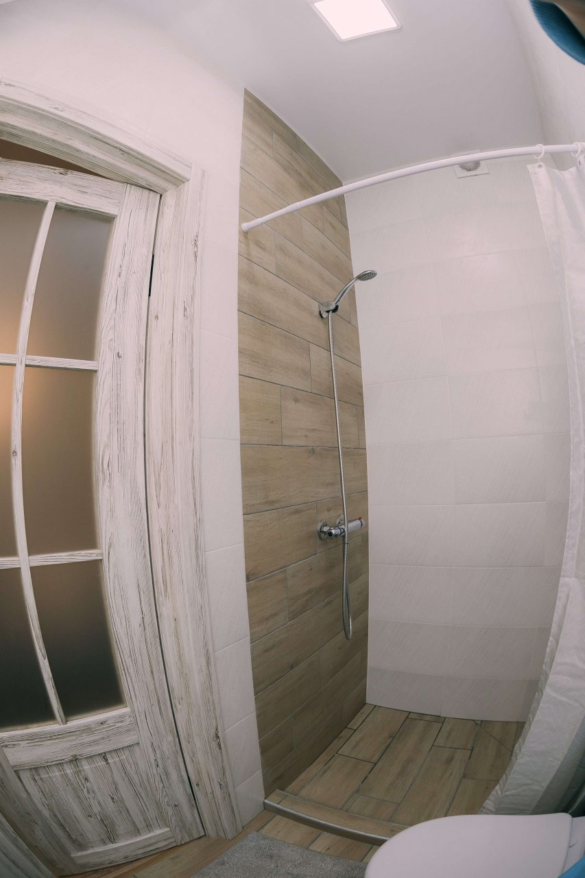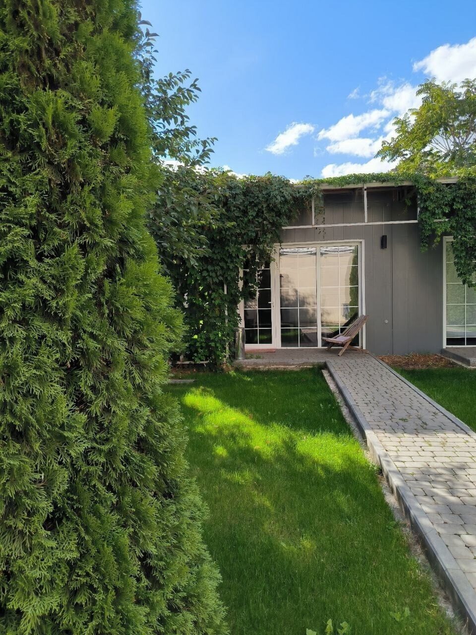 Внутри гостей ожидает удобная для сна двуспальная кровать, мягкий диван с телевизором, различные сценарии освещения, стиральная машина, санузел с душевой, регулируемая система отопления, а также панорамные окна, откуда открывается живописный вид на ухоженную территорию.