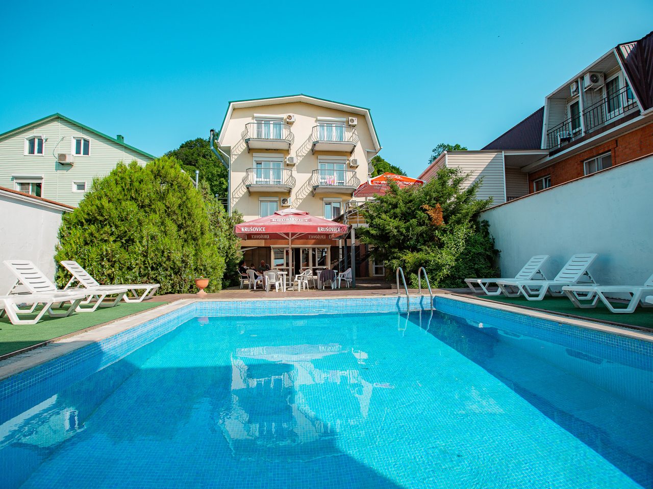 Отличное место для отдыха! Приезжали сюда с мужем на несколько дней, выбрали номер на двоих и отлично провели свой отпуск. Все, что нужно для комфорта есть: и удобная кровать, и общая кухня со всей необходимой техникой, и большой бассейн. В общем, настоятельно рекомендуем гостевой дом, потому что здесь вы точно сможете отдохнуть от привычных будней!