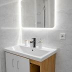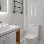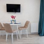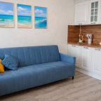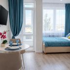 Гости могут разместиться в уютной студии, которая оборудована удобной двуспальной кроватью, диваном, кондиционером, телевизором, балконом, точкой высокоскоростного интернета и др. Санузел оснащен современной сантехникой, зеркалом с подсветкой, полотенцесушителем, средствами личной гигиены.