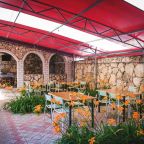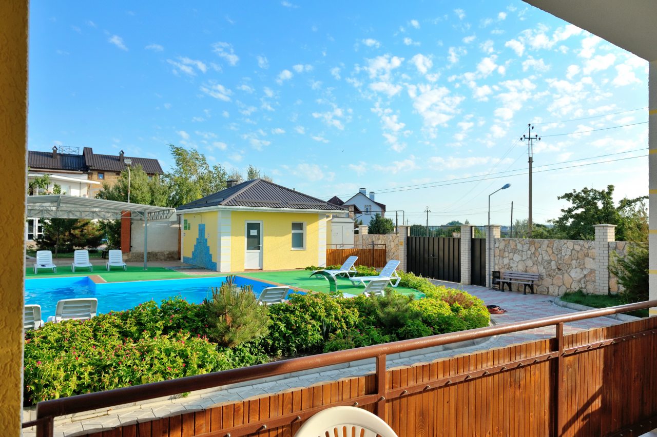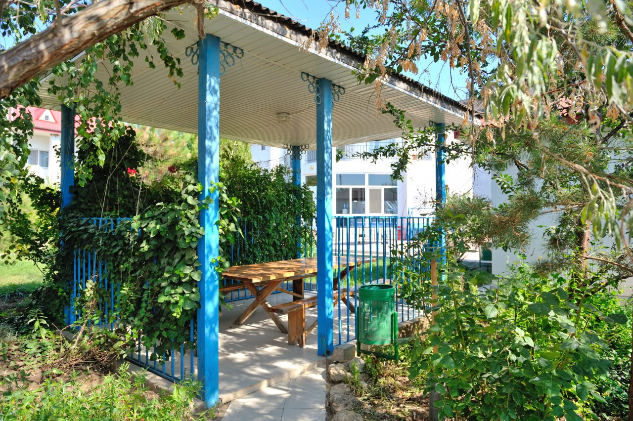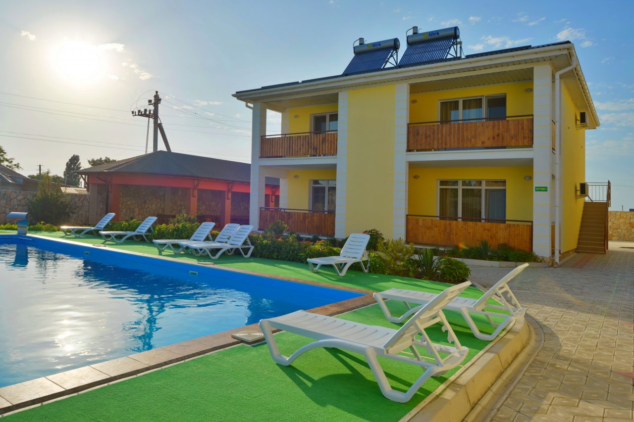 На территории имеется бассейн с шезлонгами и детский бассейн. Для прогулки можете выбрать Комсомольский парк, Парк аттракционов, Раскопки городских казарм. Расстояние до вокзала Евпатория — 61 км, до аэропорта Симферополь — 112.4 км.
