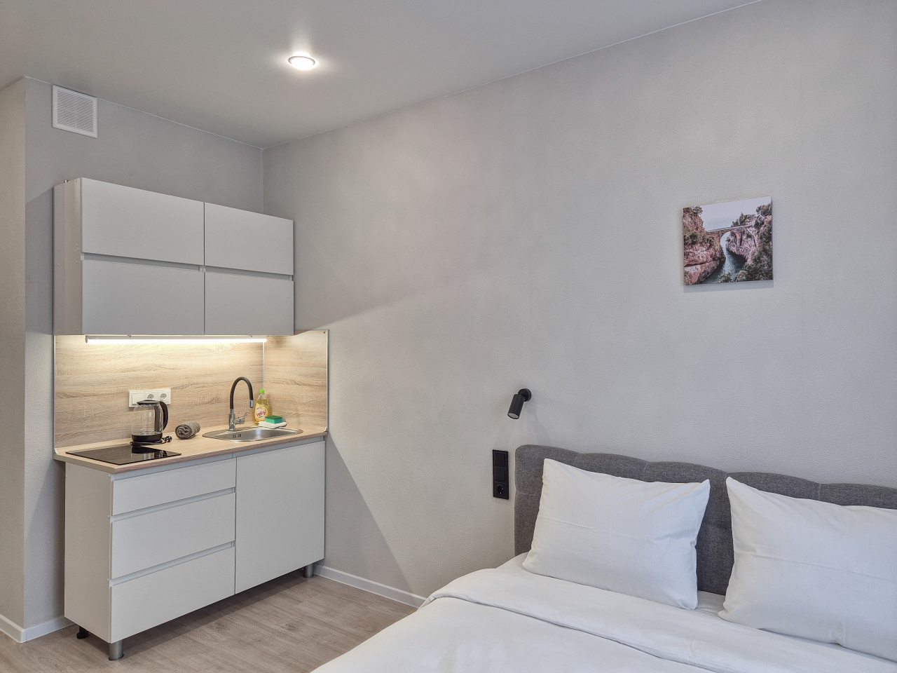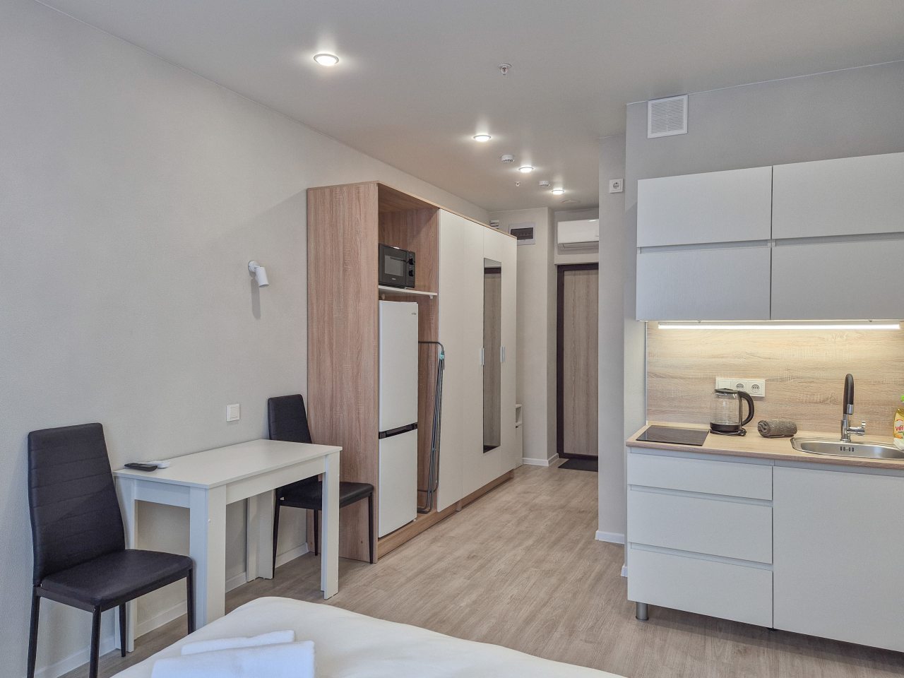 Для размещения предлагаются различные по вместимости номера в формате студий. Внутри каждого предусмотрены удобные спальные места, телевидение, прикроватные светильники для комфортного вечернего чтения, мебель для хранения вещей, а также индивидуальный санузел с раковиной, душем и туалетом.