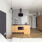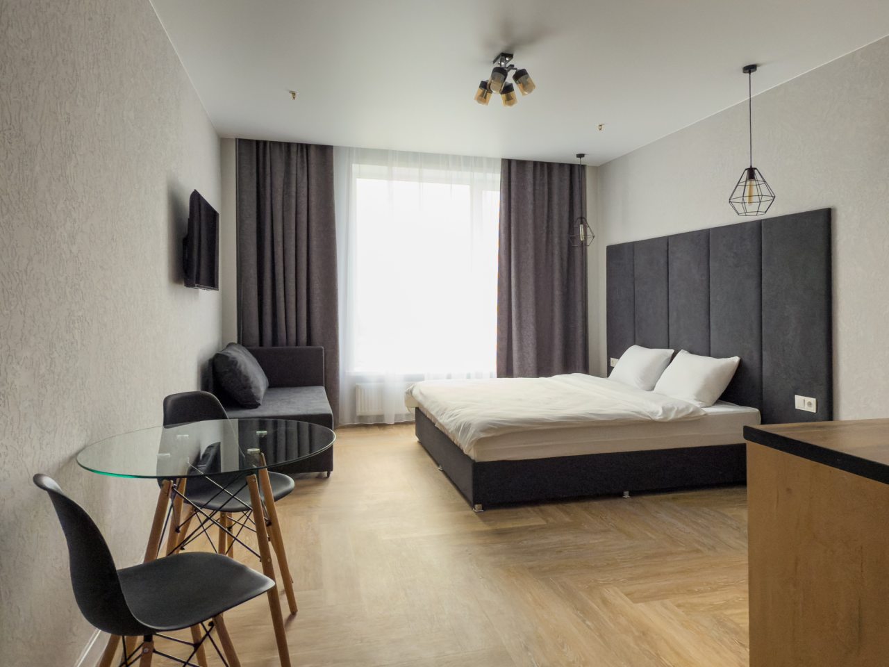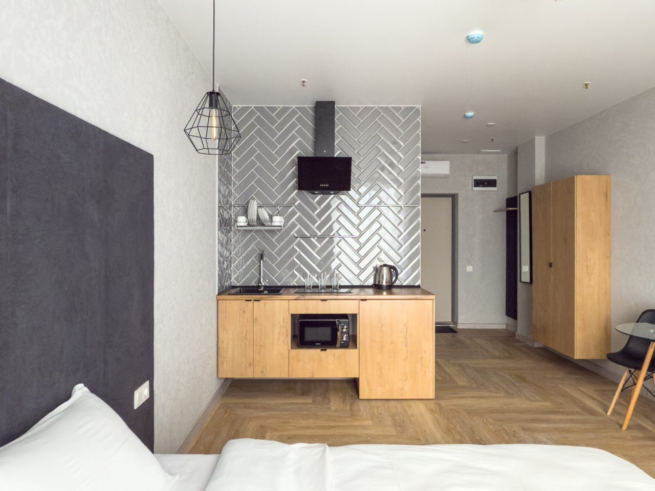 Прекрасный апарт-отель со всеми удобствами. В санузле даже есть стиральная машинка, что очень удобно. Также плюс это оборудованная мини-кухня. Расположение суперское. До реки и набережной рукой подать. Рекомендую данное место.