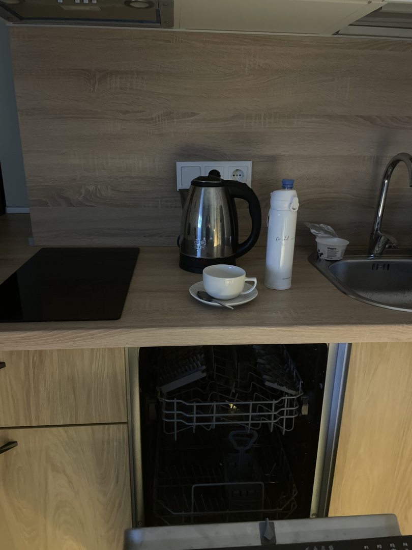 Есть всё для комфортного проживания. Очень тепло, хорошо продумана зона кухни, можно готовить самостоятельно , почти по-домашнему. Спасибо за хорошие условия проживания. Мне очень важно чувствовать себя комфортно и это состоялось. Планирую в следующую поездку остановиться в этом отеле.
