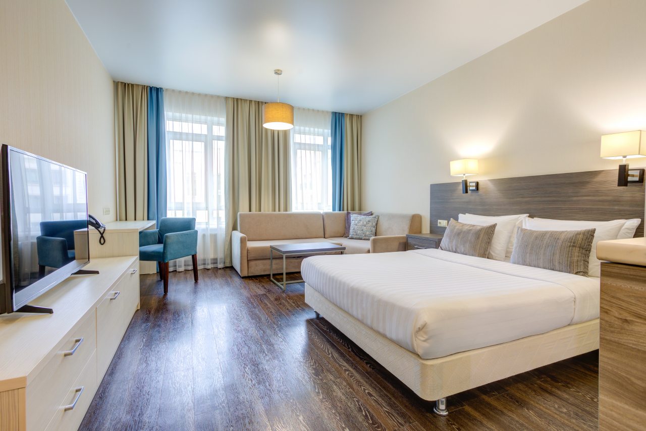 В данном отеле 145 номеров различных категорий и площади. Все кровати в апартаментах оборудованы комфортабельными ортопедическими матрасами, а в квартире есть все необходимое для проживания.
