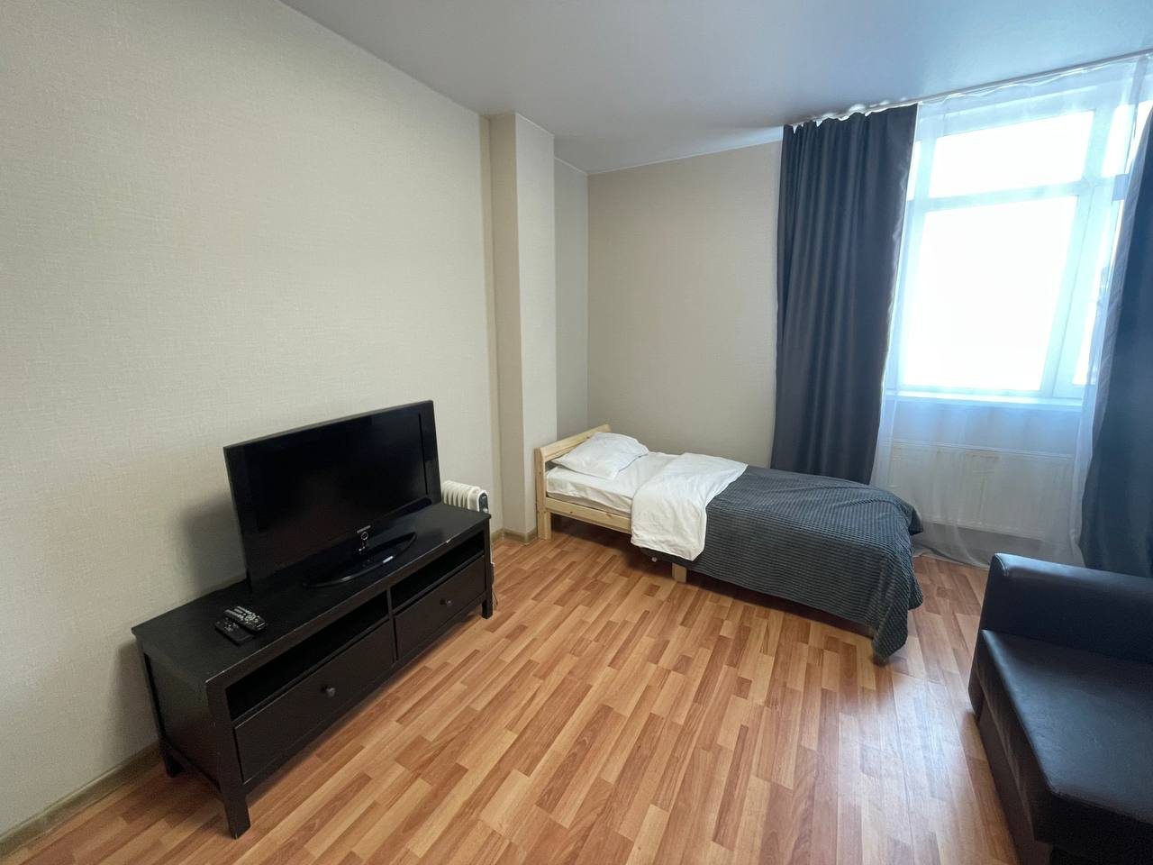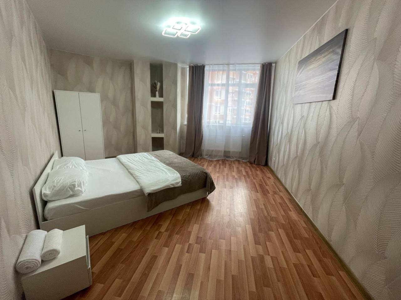 Уютные апартаменты оборудованы удобными спальными местами, шкафом, вешалками для верхней одежды, балконом с панорамными окнами, телевизором и точкой высокоскоростного интернета. Санузел раздельный и укомплектован качественной сантехникой.