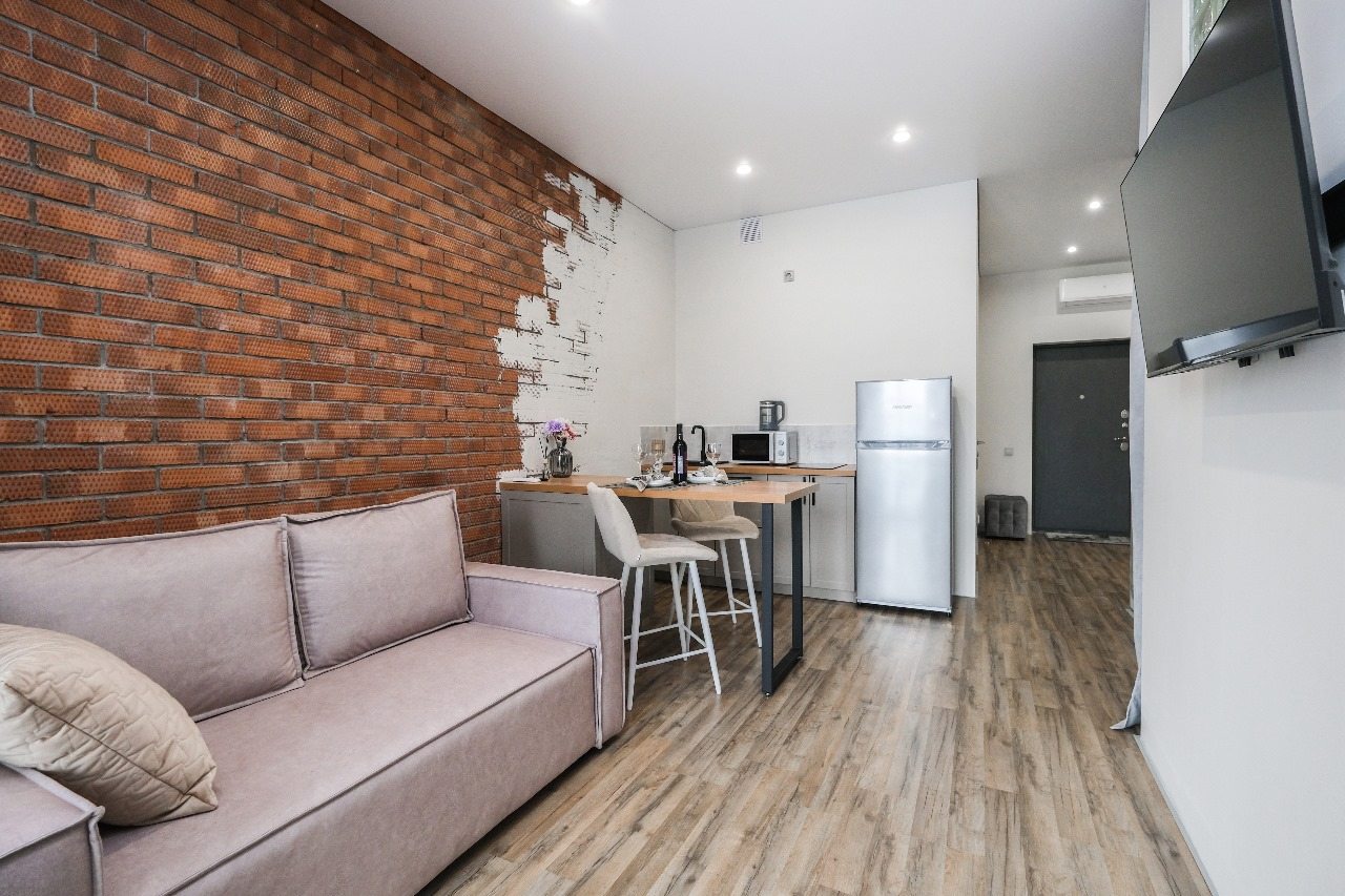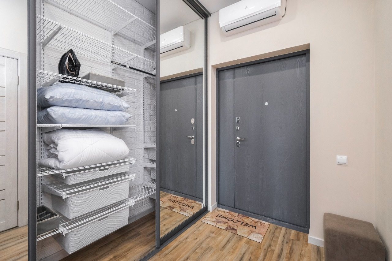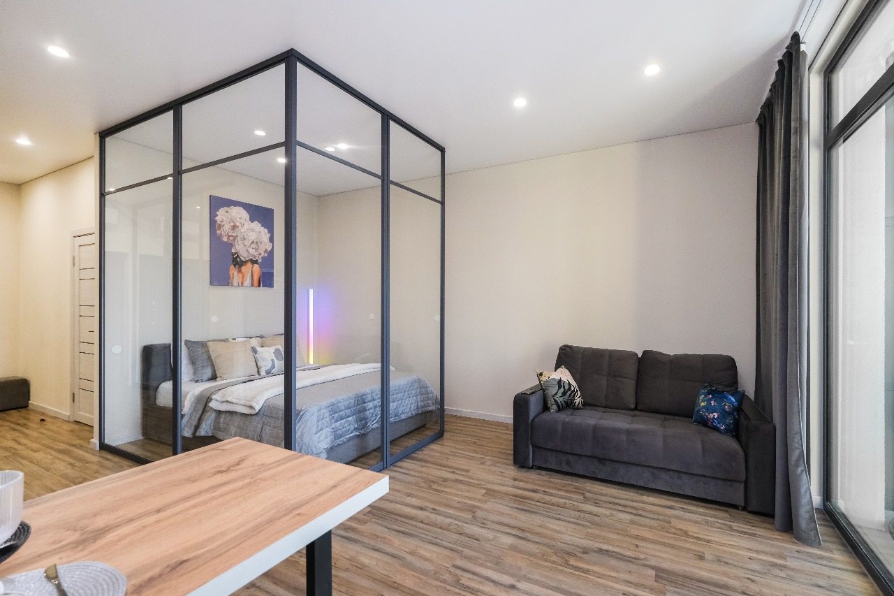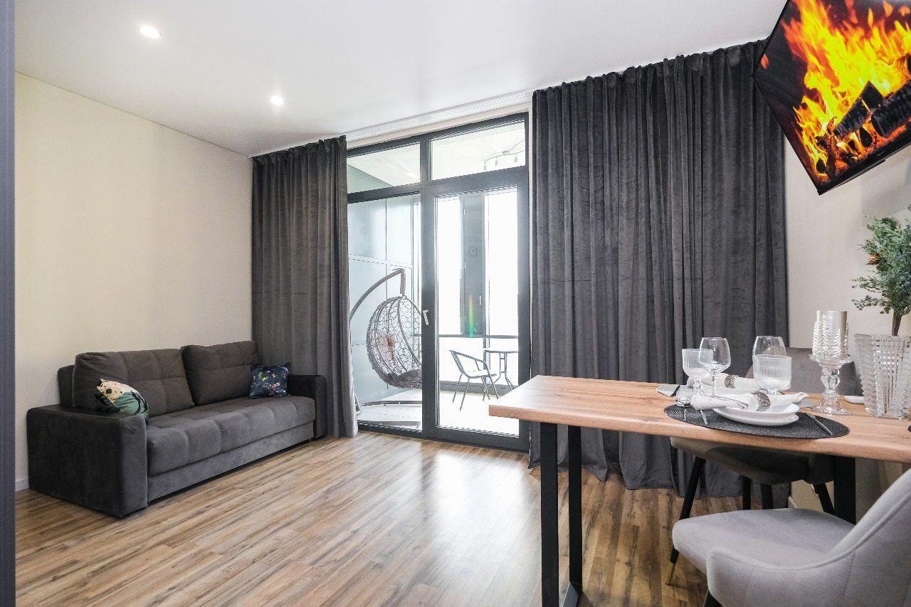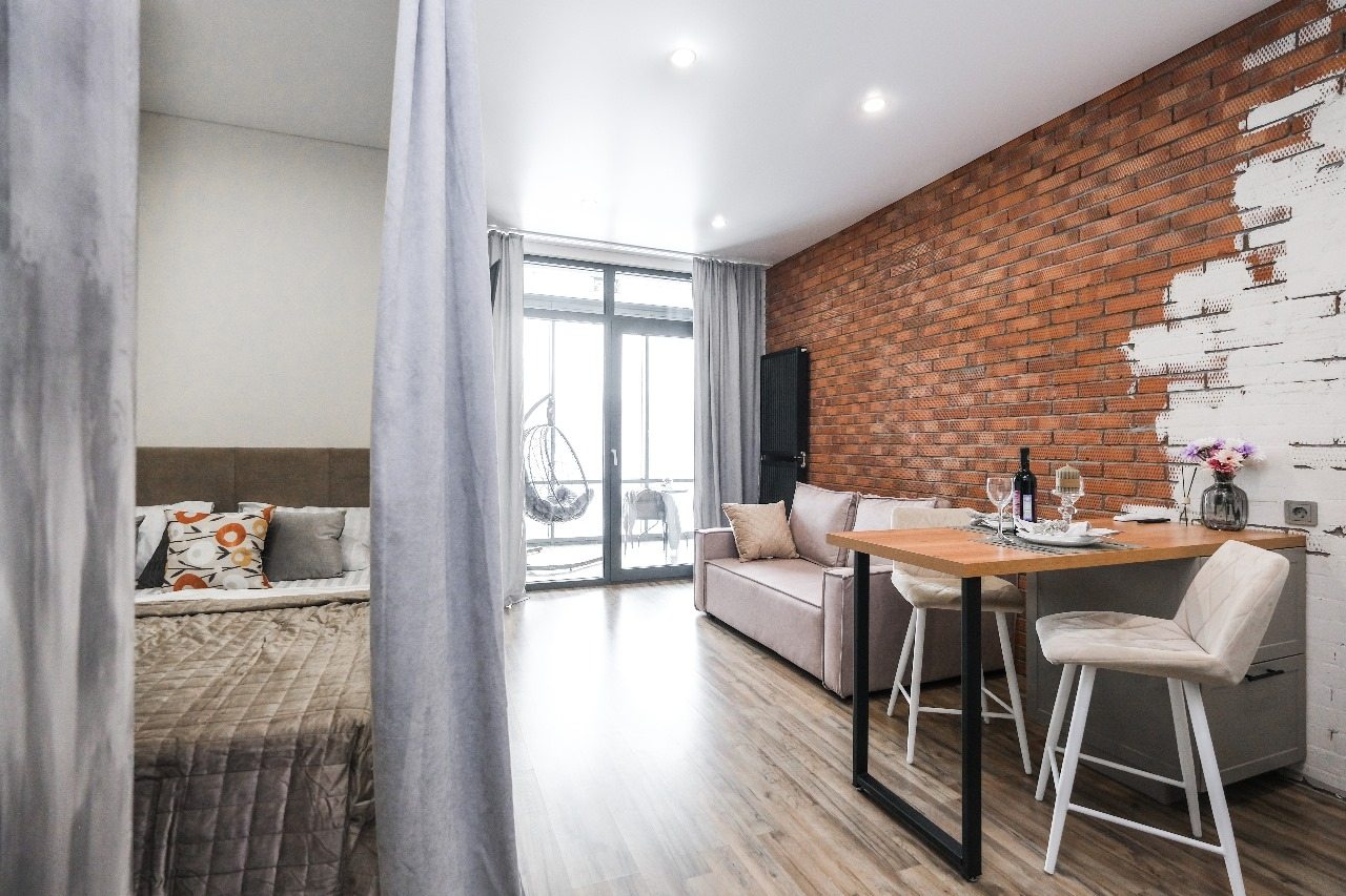Квартиры укомплектованы всем необходимым для качественного проживания и отдыха, например: удобной двуспальной кроватью с чистым постельным бельем из 100% хлопка, шкафом, телевизором, затемненными шторами, кухонной зоной, ванной комнатой и балконом с панорамными окнами. Санузел имеет комплект современной сантехники, фен для волос, стиральную машину и гигиенические средства.