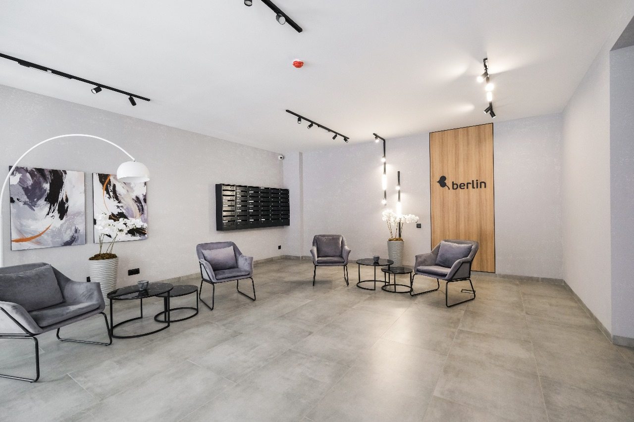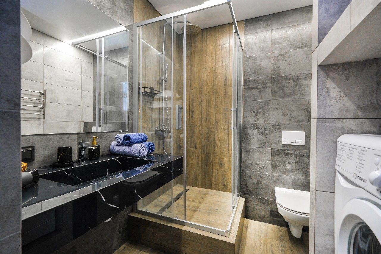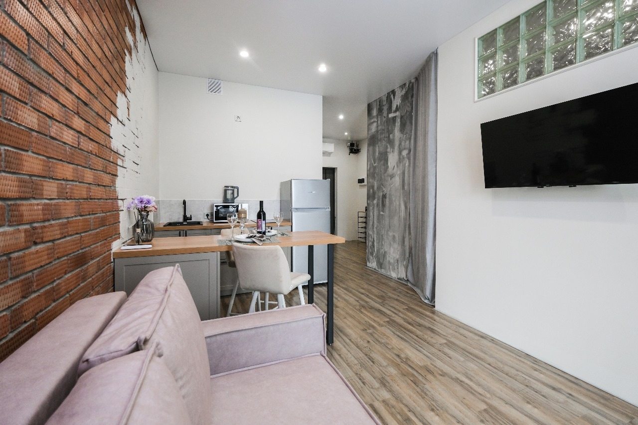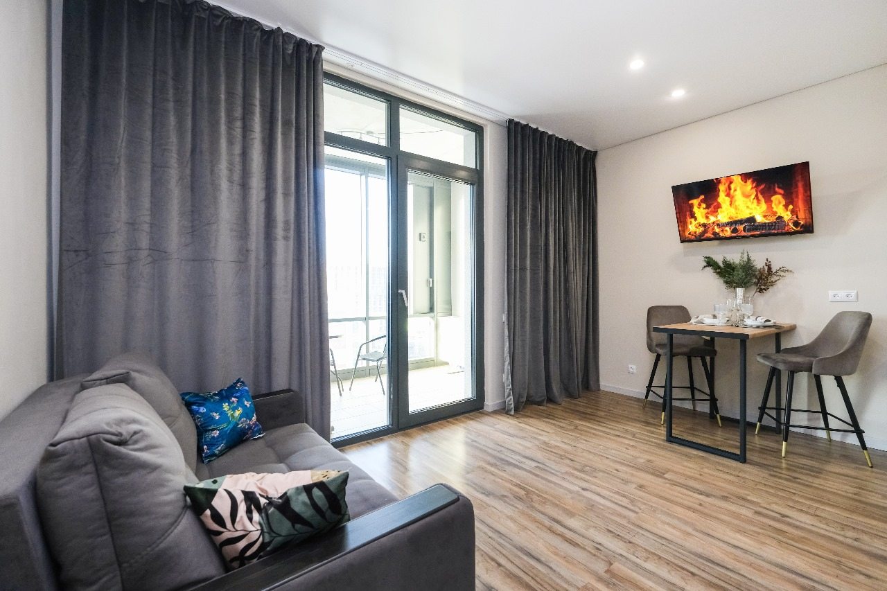 Квартиры укомплектованы всем необходимым для качественного проживания и отдыха, например: удобной двуспальной кроватью с чистым постельным бельем из 100% хлопка, шкафом, телевизором, затемненными шторами, кухонной зоной, ванной комнатой и балконом с панорамными окнами. Санузел имеет комплект современной сантехники, фен для волос, стиральную машину и гигиенические средства.