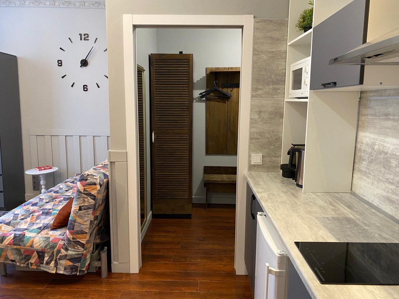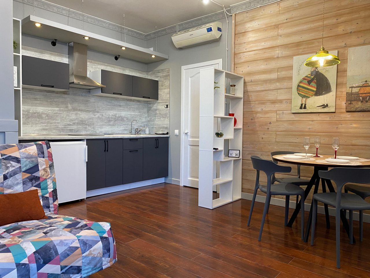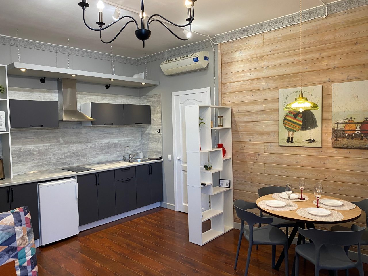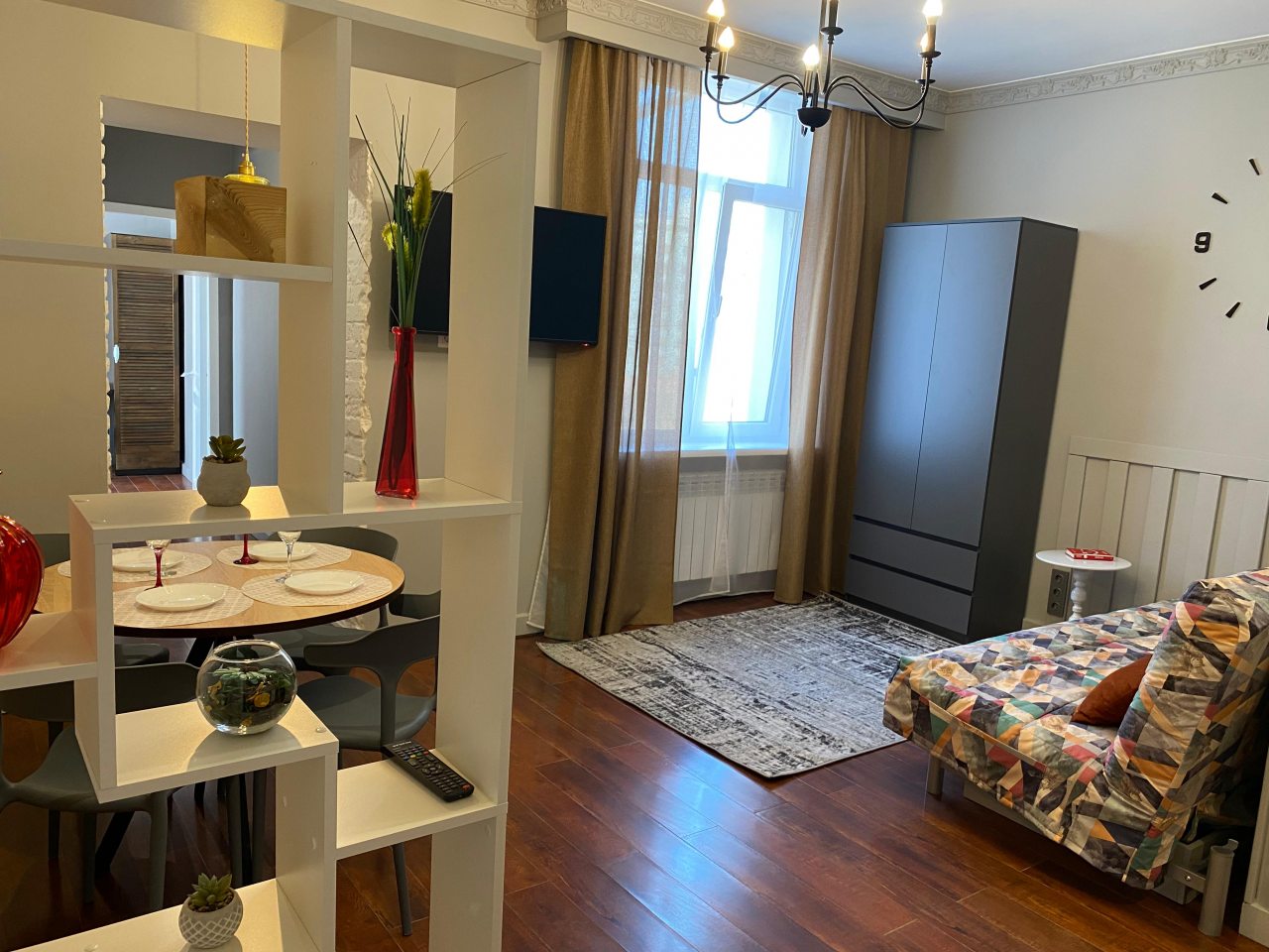 Отличная точка для тех, кто любит быть в эпицентре событий. Вокруг масса заведений, транспорт под боком. Несмотря на центральное расположение, в квартире уютно и спокойно. Все мелочи продуманы — было приятно почувствовать заботу. Приятная цветовая гамма создавала расслабляющее настроение. Хорошее место для тех, кто совмещает отдых и дела. Обстановка ненавязчивая, как дома.
