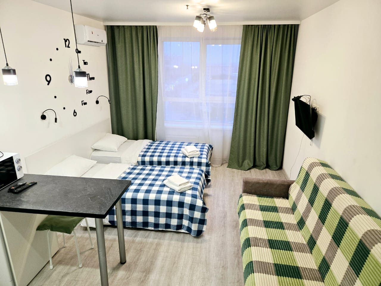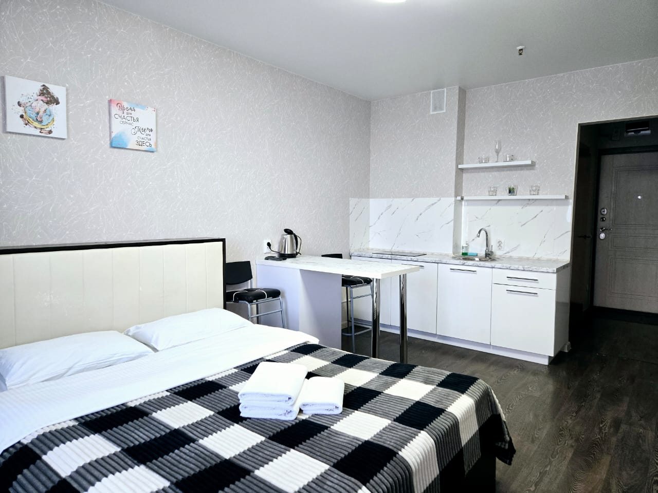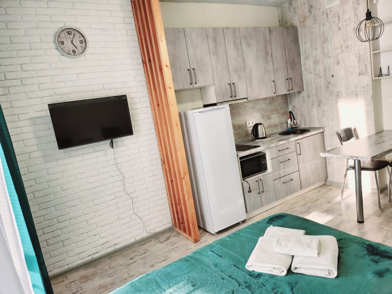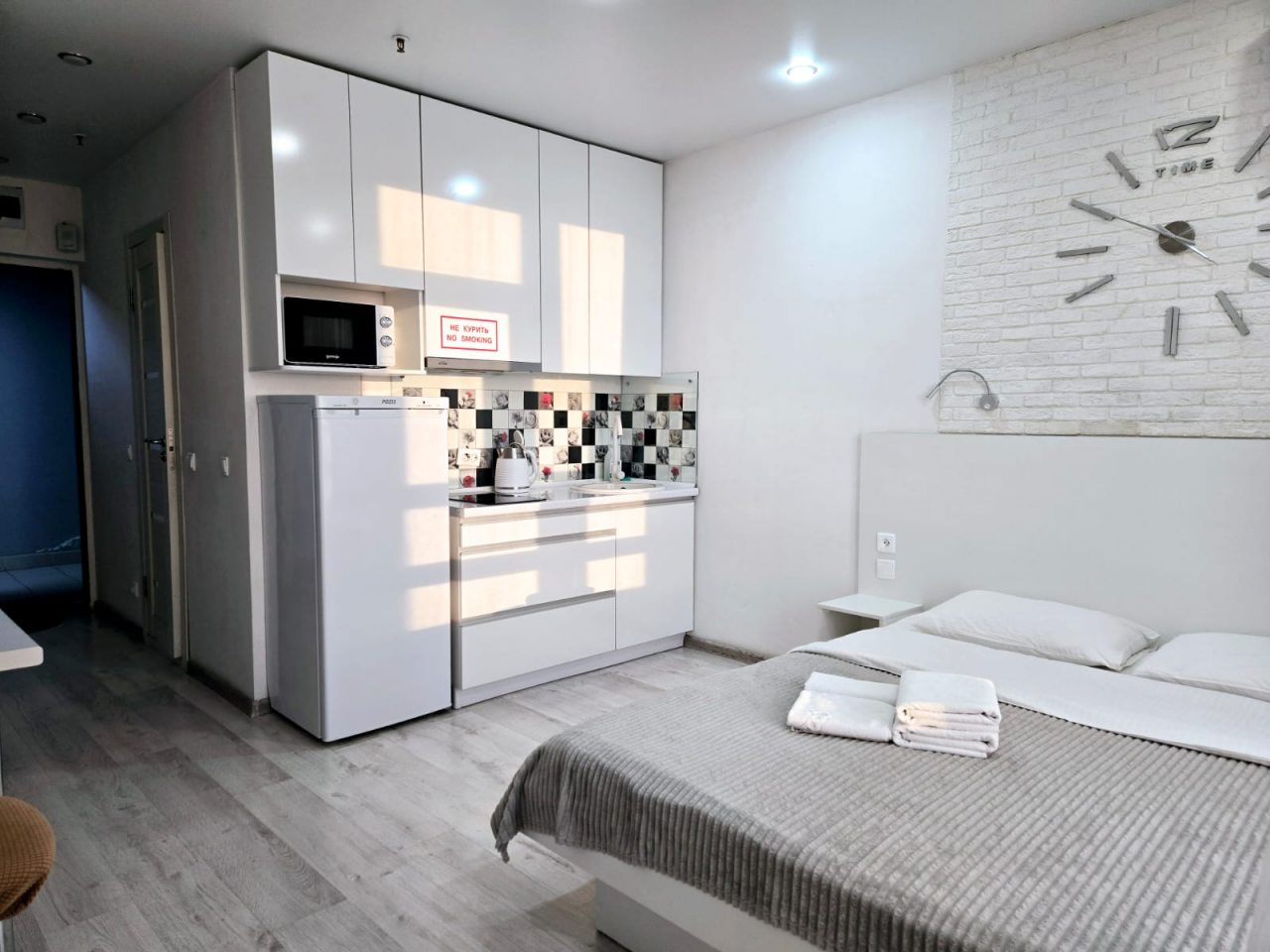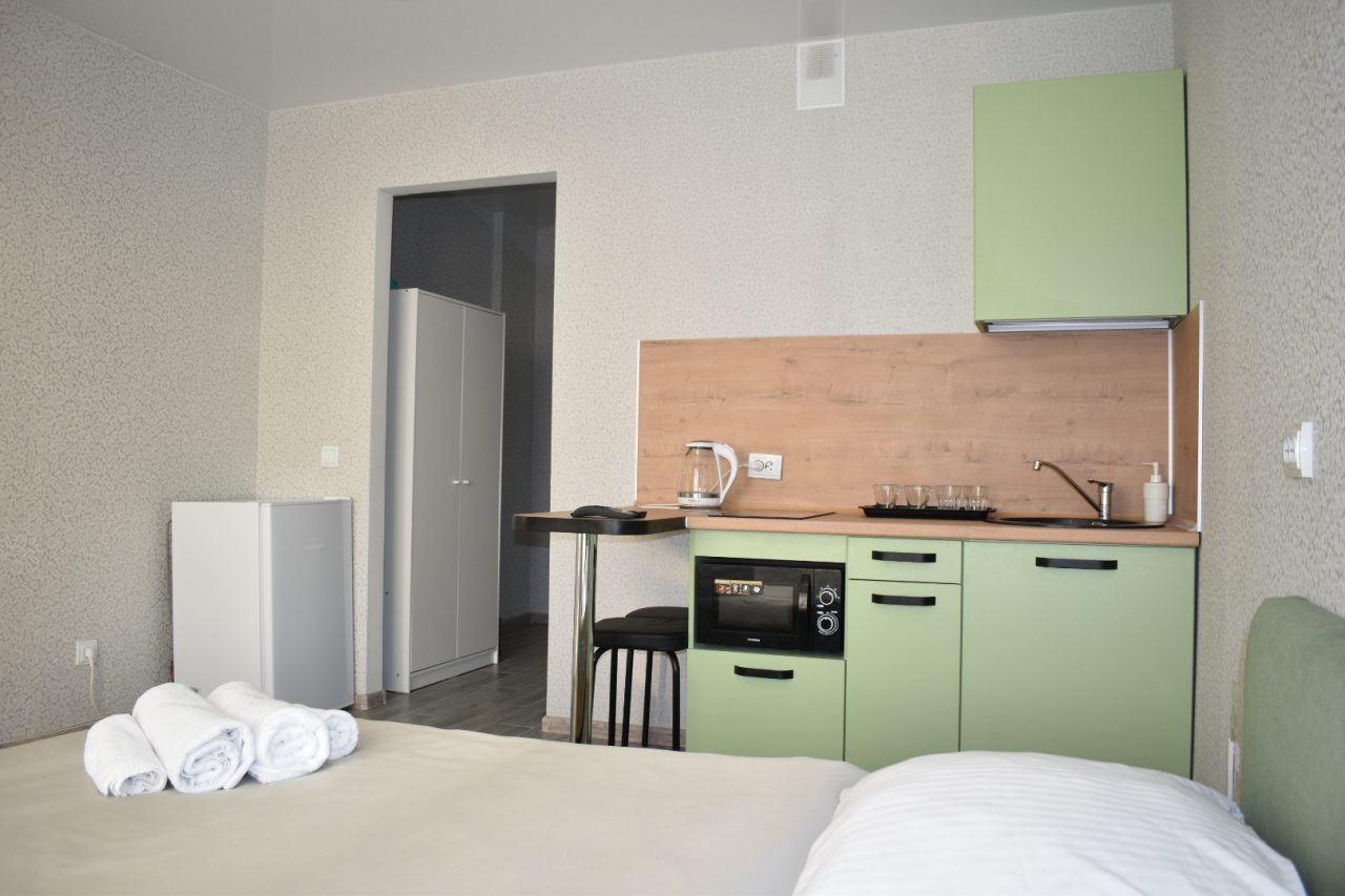 Мини-кухня оборудована всем необходимым для удобного приготовления пищи. В шаговой доступности продовольственный магазин.