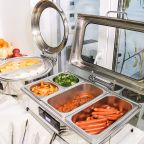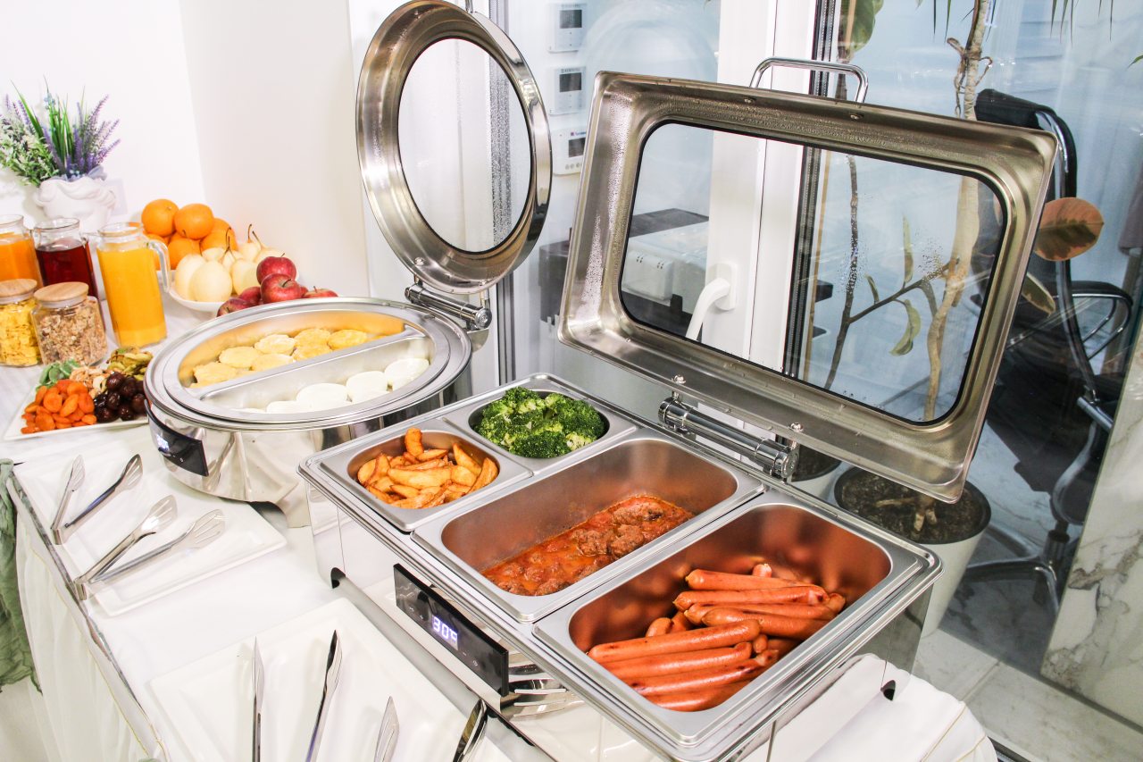 В кухонной зоне есть плита и чайник для приготовления легких блюд и организации чаепитий. В шаговой доступности работают сети быстрого питания и кондитерская.