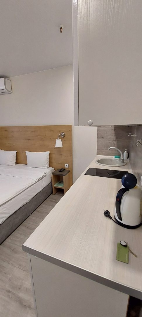 Очень понравилась гостиница. Были проездом, заранее забронировали и оплатили. Приехали и очень быстро заселили. Доброжелательная девушка администратор. В номере есть холодильник, кухонные принадлежности, микроволновка, чайник, кондиционер и даже посудомоечная машина, душевая кабина, и даже стиральная машинка. Очень чисто, современно и уютно. Спасибо вам!