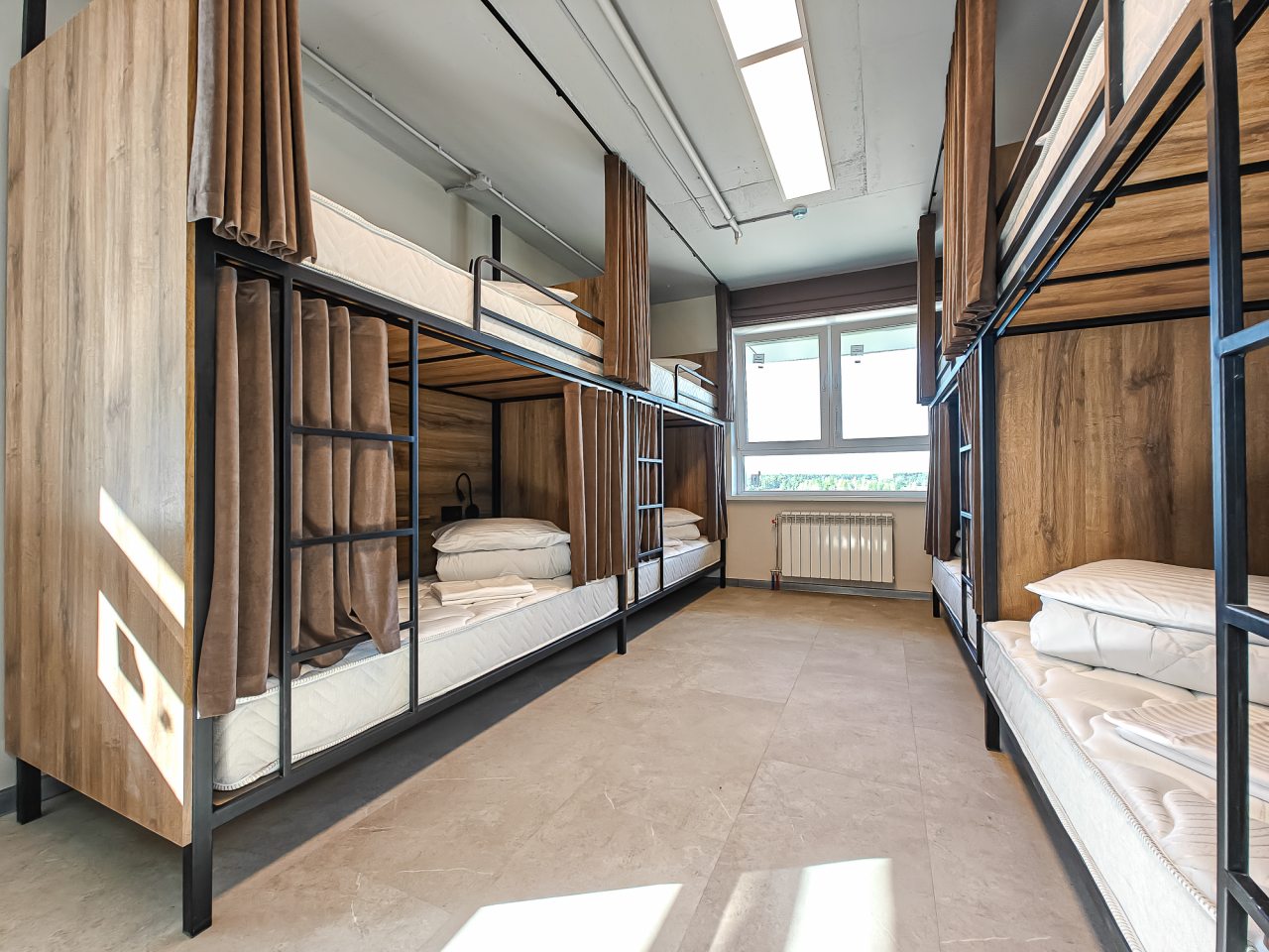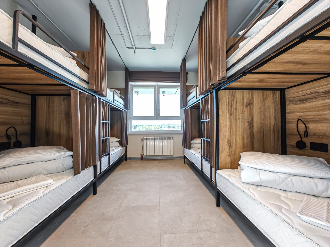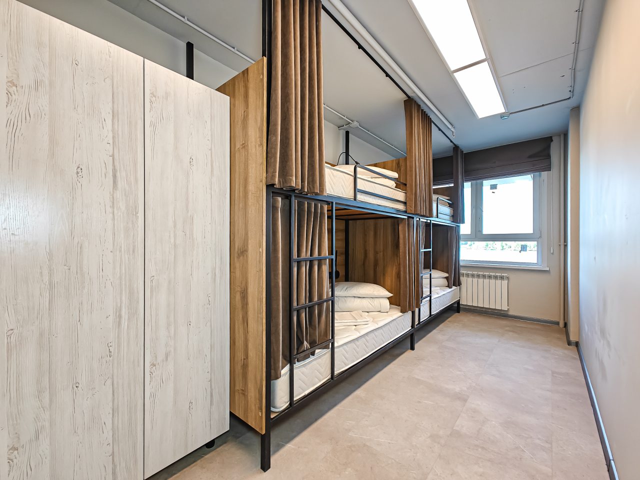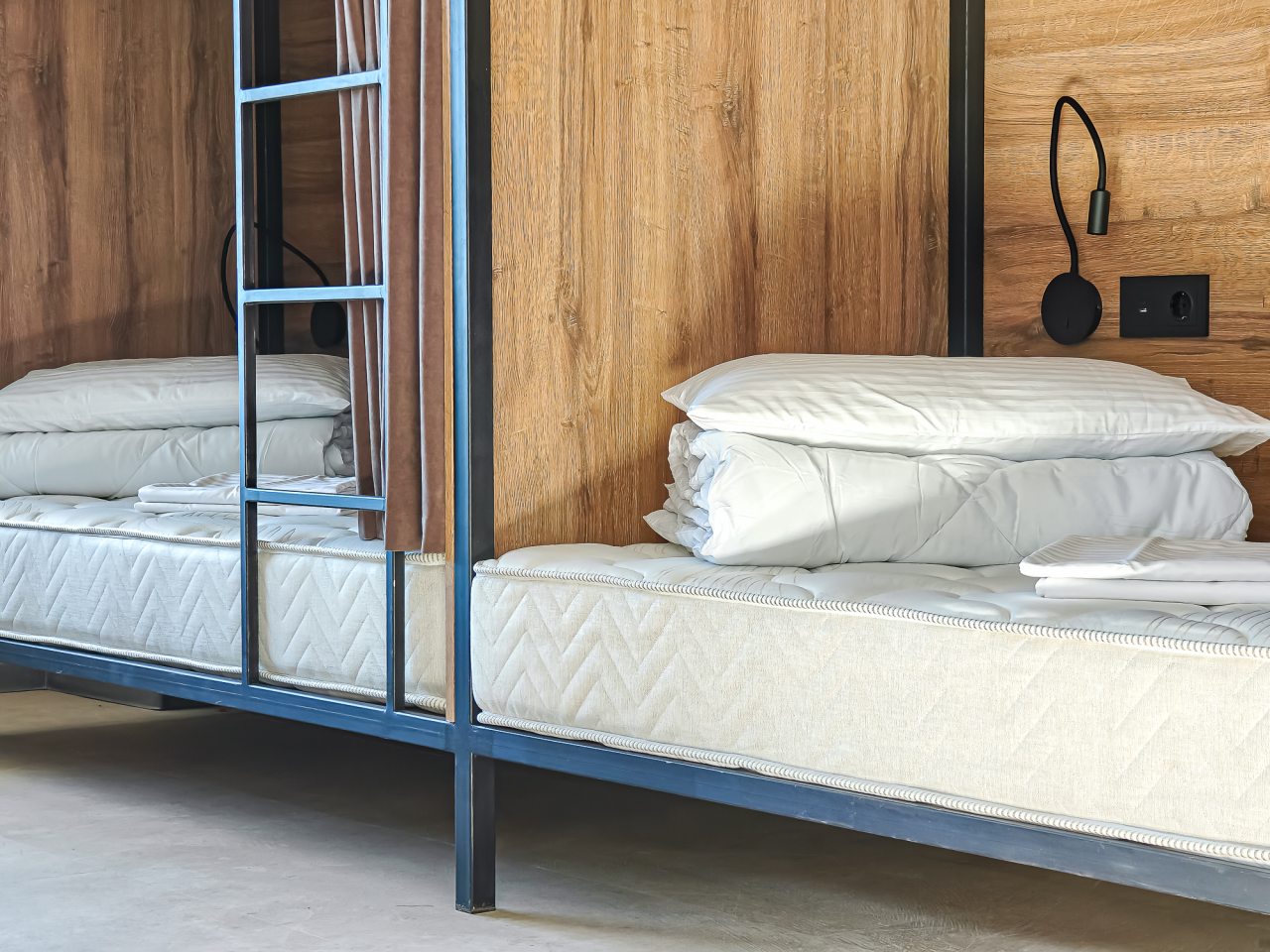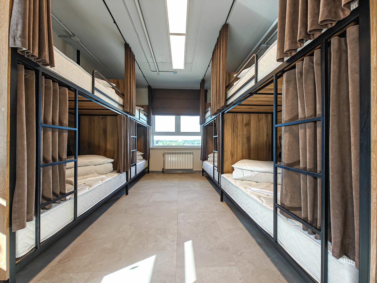 Доступны номера различной вместимости. Внутри вас ожидает кровать с удобным матрасом, шкаф, набор постельного белья, полотенце, прикроватный светильник для комфортного вечернего чтения, а также предусмотрена розетка возле кровати и бесплатный Wi-Fi. Для дополнительного удобства предусмотрены гладильные принадлежности и стиральные машины в общей зоне. Общий санузел укомплектован душевыми, раковинами и другой необходимой сантехникой.