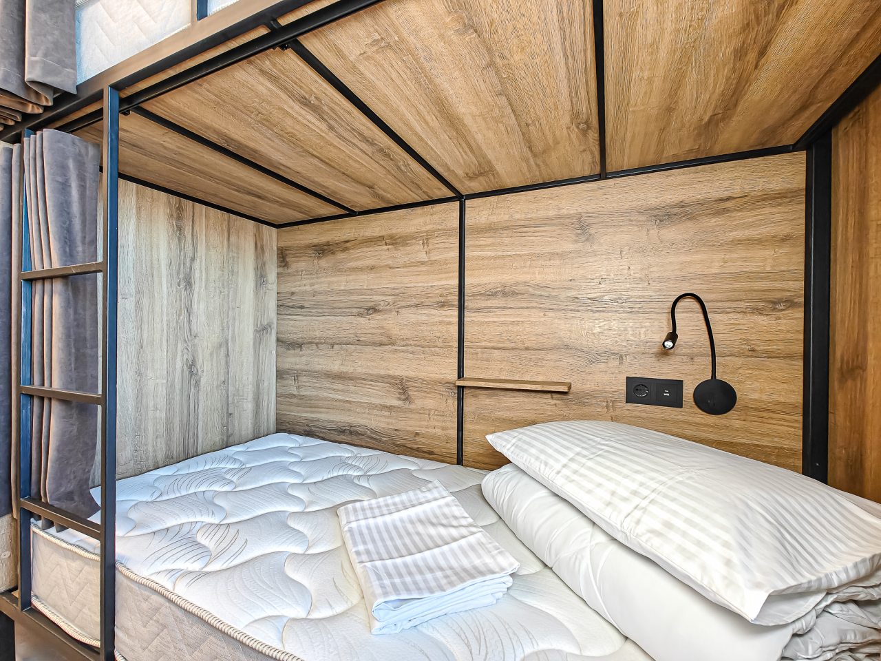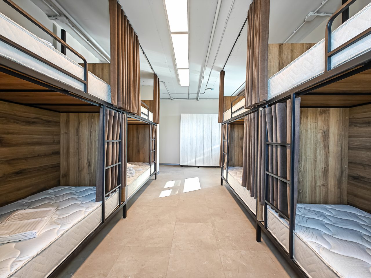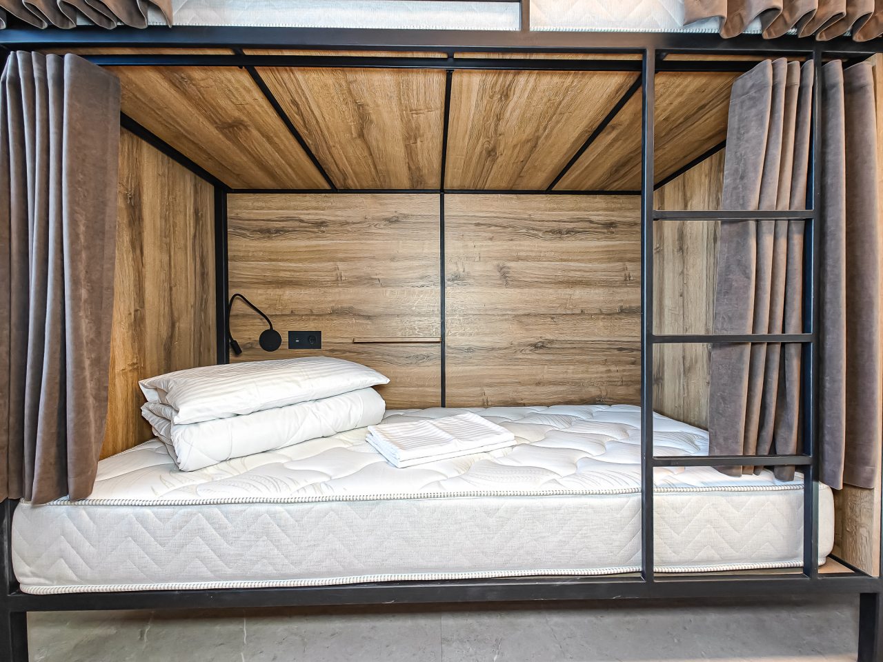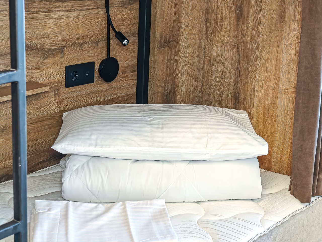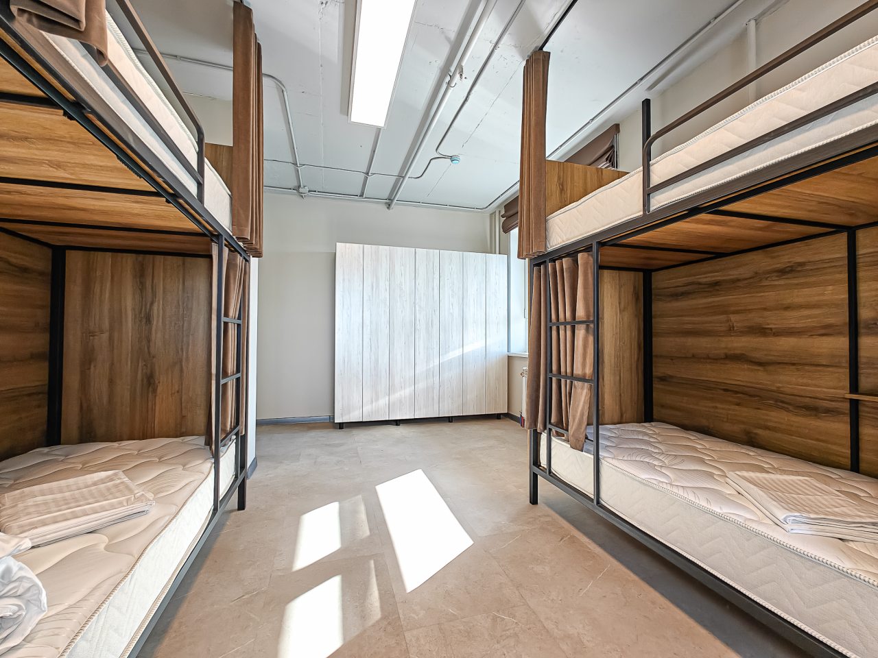 Доступны номера различной вместимости. Внутри вас ожидает кровать с удобным матрасом, шкаф, набор постельного белья, полотенце, прикроватный светильник для комфортного вечернего чтения, а также предусмотрена розетка возле кровати и бесплатный Wi-Fi. Для дополнительного удобства предусмотрены гладильные принадлежности и стиральные машины в общей зоне. Общий санузел укомплектован душевыми, раковинами и другой необходимой сантехникой.