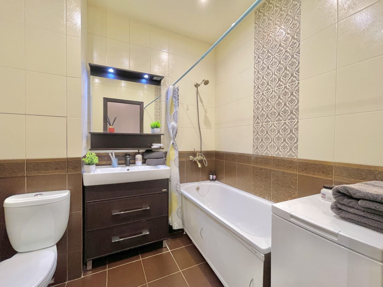 Квартиру снимали для короткой командировки — не хотелось отеля, и здесь удалось почувствовать себя как дома. Уютная обстановка, мебель удобная, всё по делу. Рабочее место есть, интернет стабильный — с видеосвязью проблем не возникло. Заселение прошло по чёткой схеме, всё быстро и без лишней суеты. Район не шумный, можно выспаться. Магазины в паре минут пешком, что экономит время.