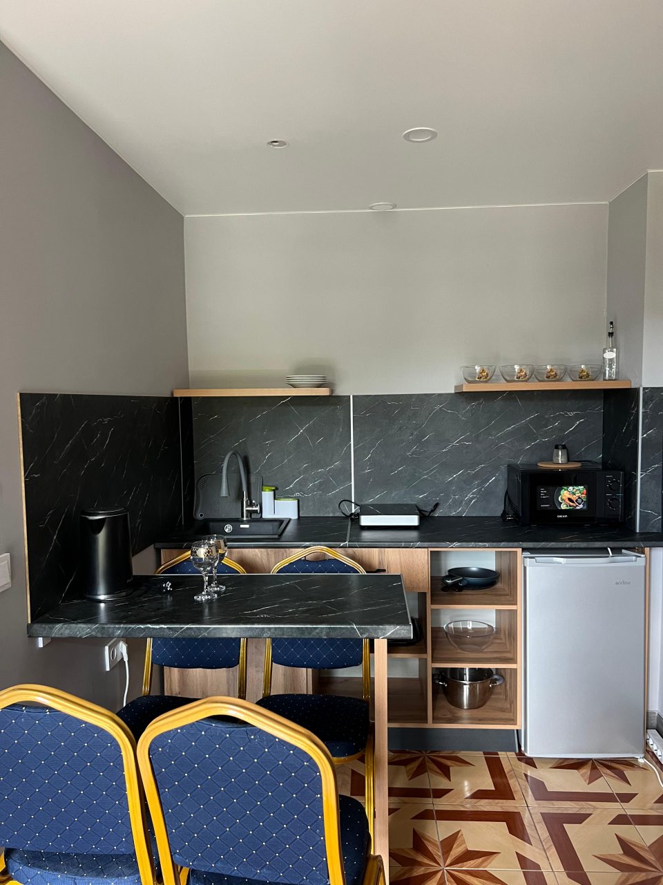 Остановились с мужем в этой гостинице. Выбрали для себя двухместный номер. Внутри все оказалось как на сайте бронирования. Техника старовата, но отлично работает. Номер чистый, свежий и светлый. Постельное белье было также чистое, белоснежное, без пятин и дырок. Спалось нам здесь отлично, никаких шумных соседей, либо же звукоизоляция очень хорошая. Но сон был крепкий. В номере был собственный санузел с душем.