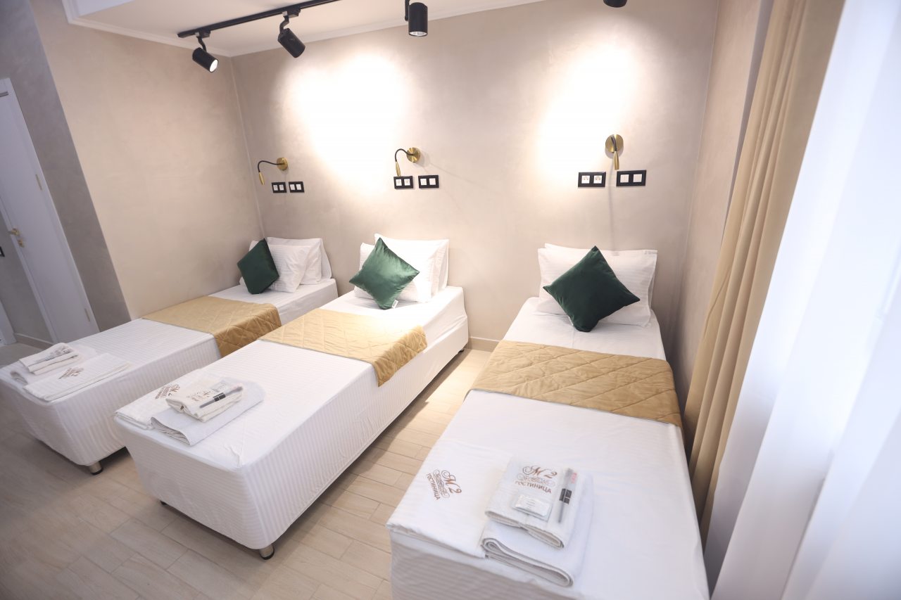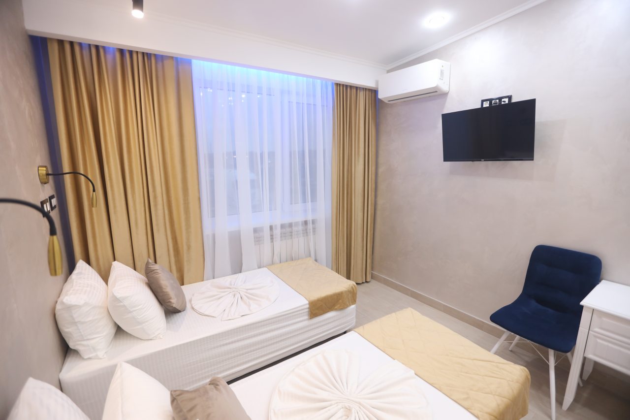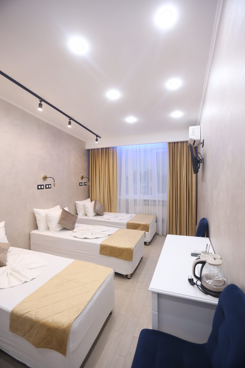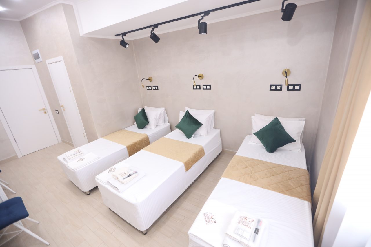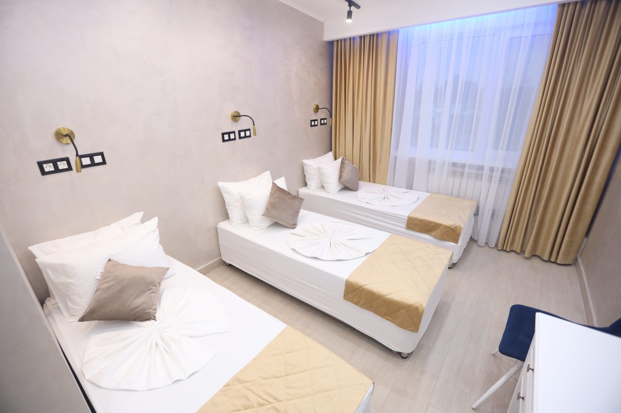 Заехали семьёй на ночь проездом: 3 взрослых + 1 ребёнок. 4-х местный номер: 2 кровати + 1 2-х ярусная. На ресепшене очень хорошенькая, приятная, вежливая девушка. Предложила несколько вариантов. Чисто, нормальная парковка, удобное расположение для проезжающих. Спать комфортно, удобства качественные. Завтрак вкусный.