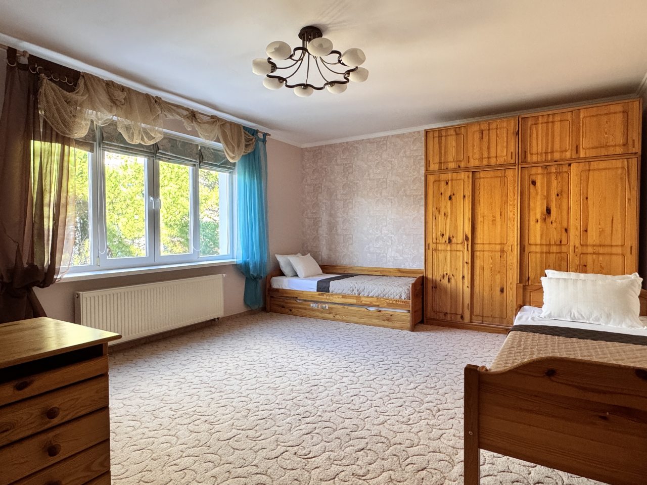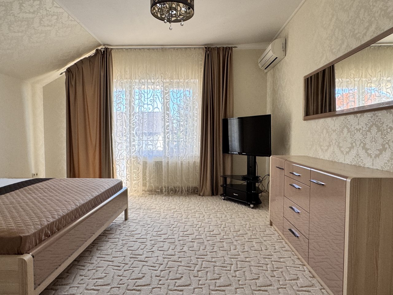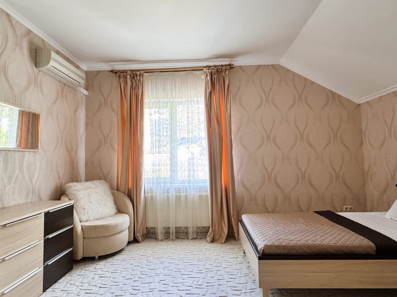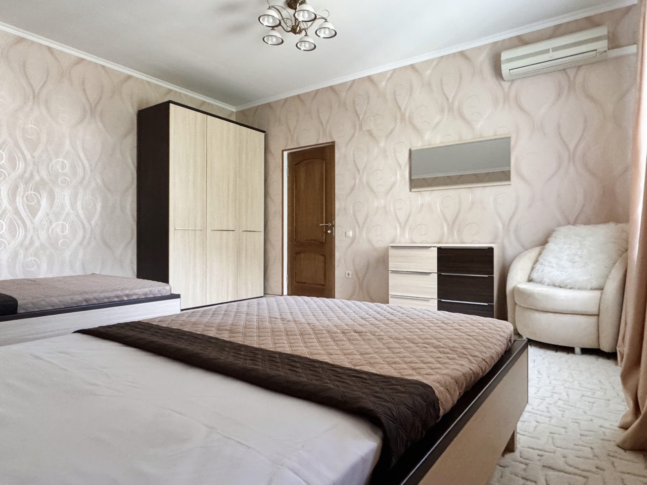 Коттедж отлично подходит для спокойного отдыха в Ялте, так как находится в тихом районе частного сектора. Мы приезжали сюда компанией из трех семей, и так как комнат много и в принципе площадь дома огромная, хватило всем места с лихвой. Наполнение стандартное, главное, что есть вся необходимая техника и мебель для проживания. Все остались довольны.