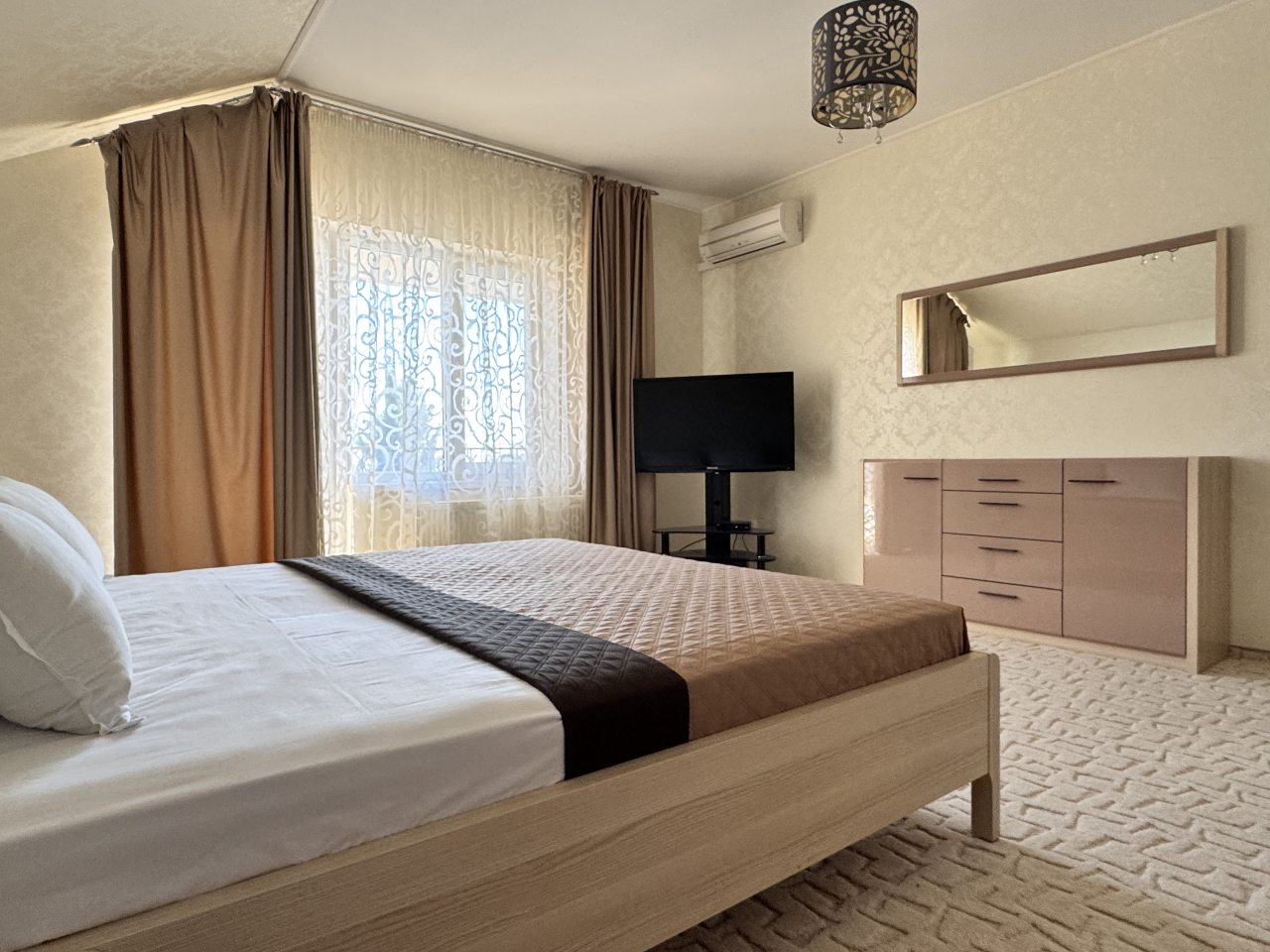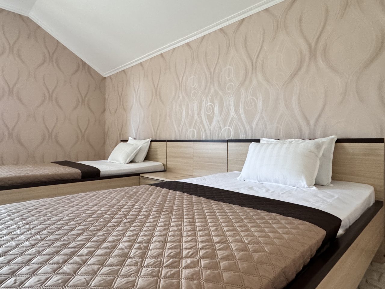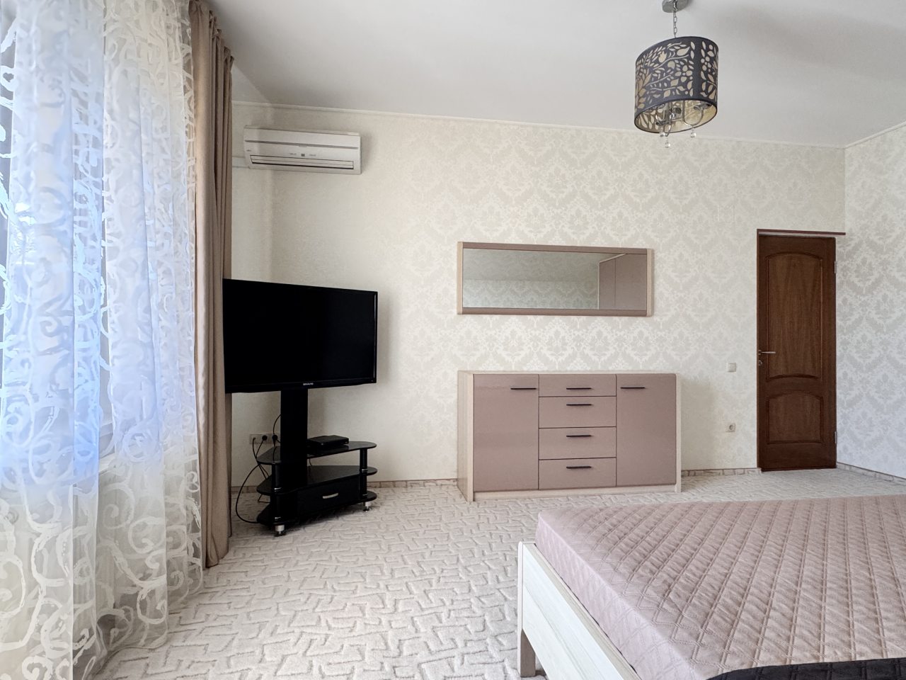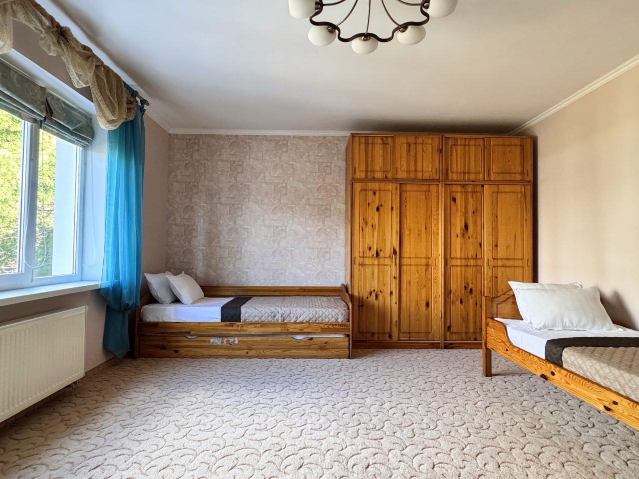 Коттедж отлично подходит для спокойного отдыха в Ялте, так как находится в тихом районе частного сектора. Мы приезжали сюда компанией из трех семей, и так как комнат много и в принципе площадь дома огромная, хватило всем места с лихвой. Наполнение стандартное, главное, что есть вся необходимая техника и мебель для проживания. Все остались довольны.