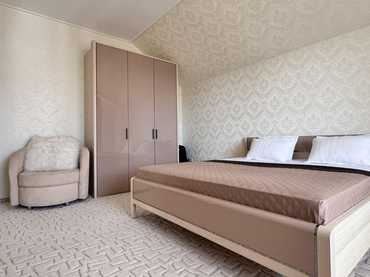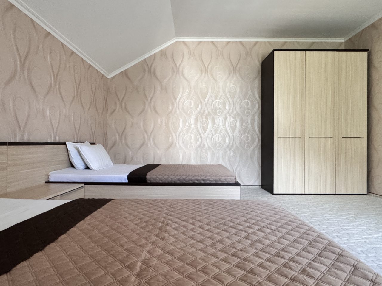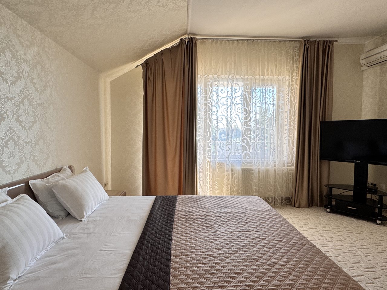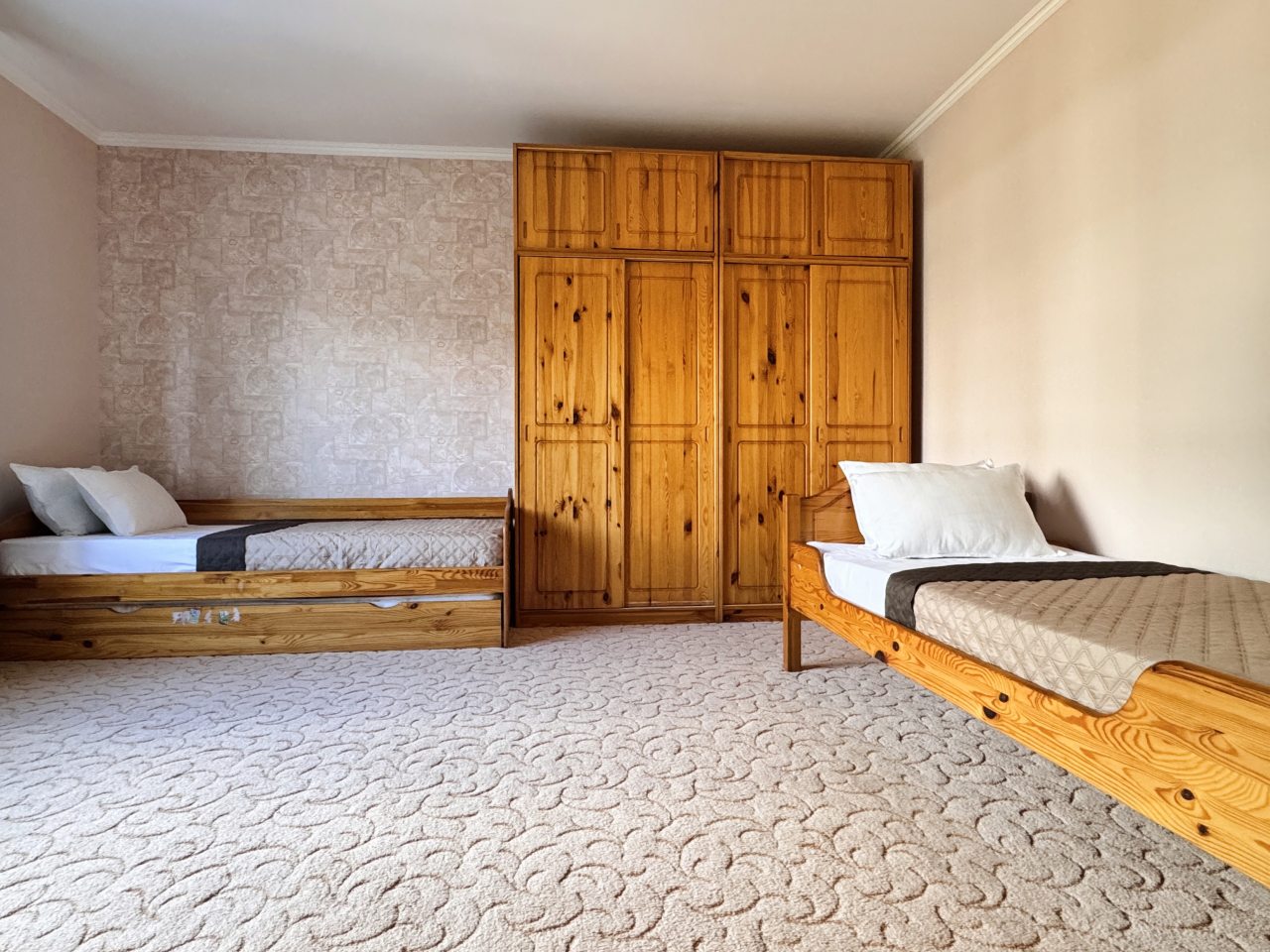 Коттедж отлично подходит для спокойного отдыха в Ялте, так как находится в тихом районе частного сектора. Мы приезжали сюда компанией из трех семей, и так как комнат много и в принципе площадь дома огромная, хватило всем места с лихвой. Наполнение стандартное, главное, что есть вся необходимая техника и мебель для проживания. Все остались довольны.