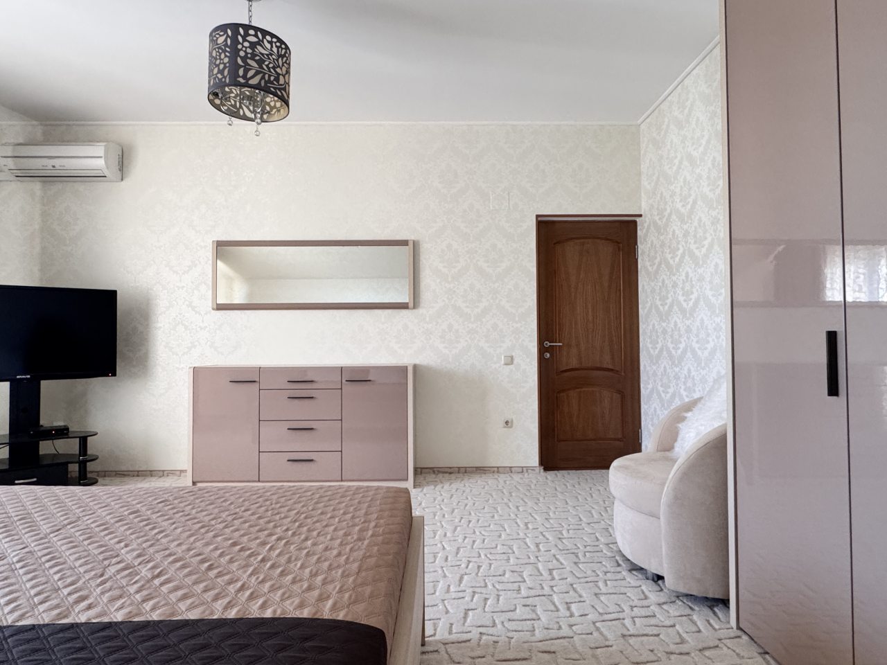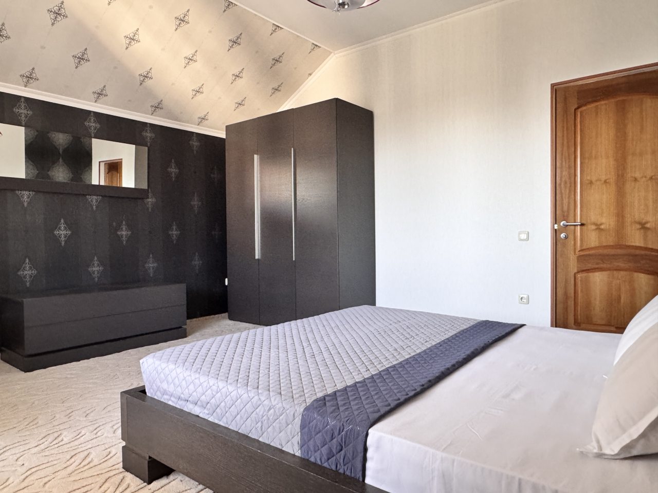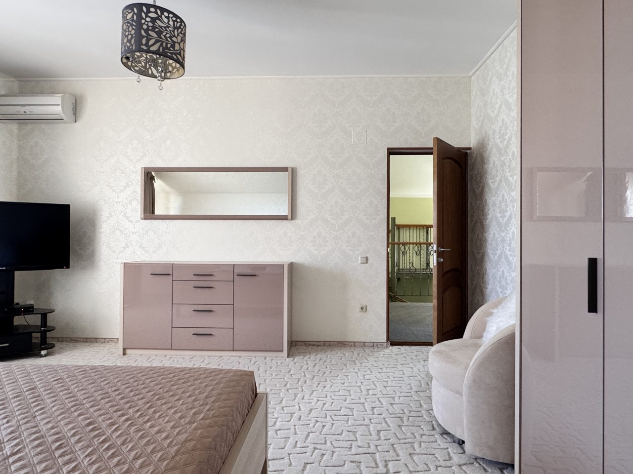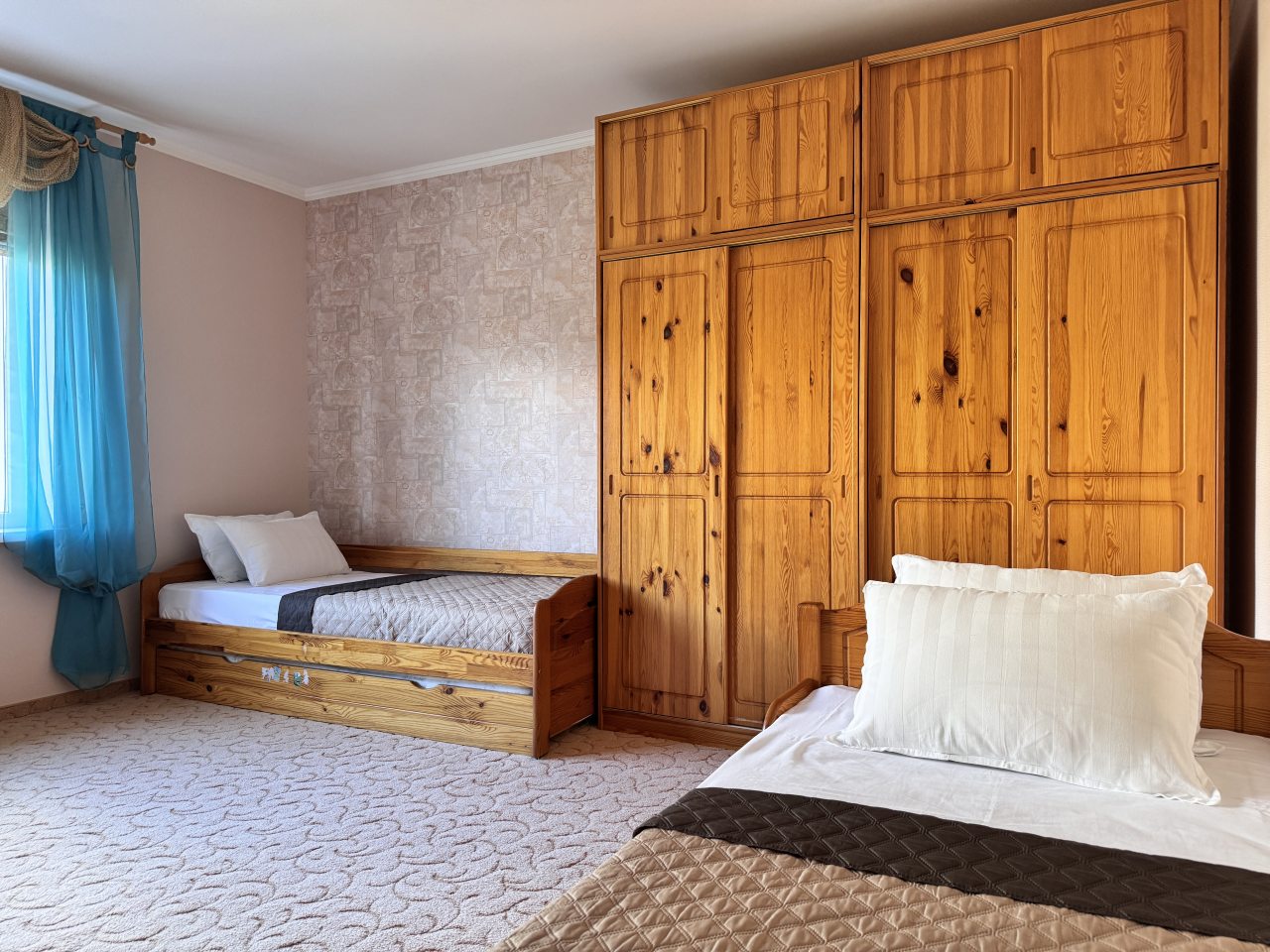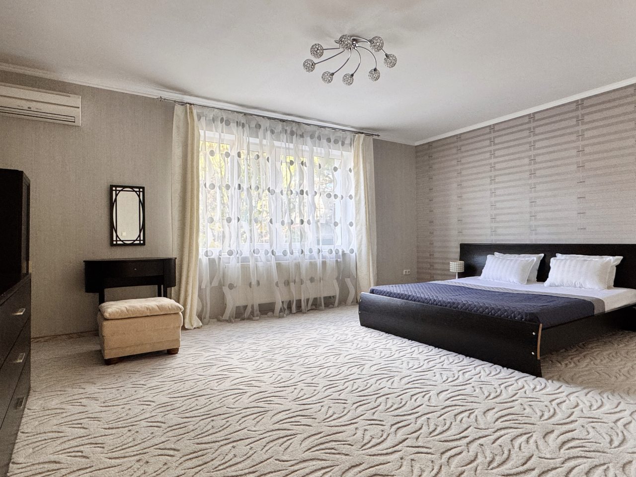 Эта великолепная вилла с личным бассейном на территории предлагает восемь спален, просторную гостиную и оборудованную кухонную зону, что делает её идеальным местом для отдыха. В номере есть четыре односпальные и четыре двуспальные кровати, а также две диван-кровати для дополнительного комфорта. В числе удобств - кондиционер, телевизор, Wi-Fi и балкон с красивым видом. В ванной комнате находятся все необходимые принадлежности. Элегантный интерьер с ковровым покрытием и мраморными полами создает атмосферу уюта и стиля.