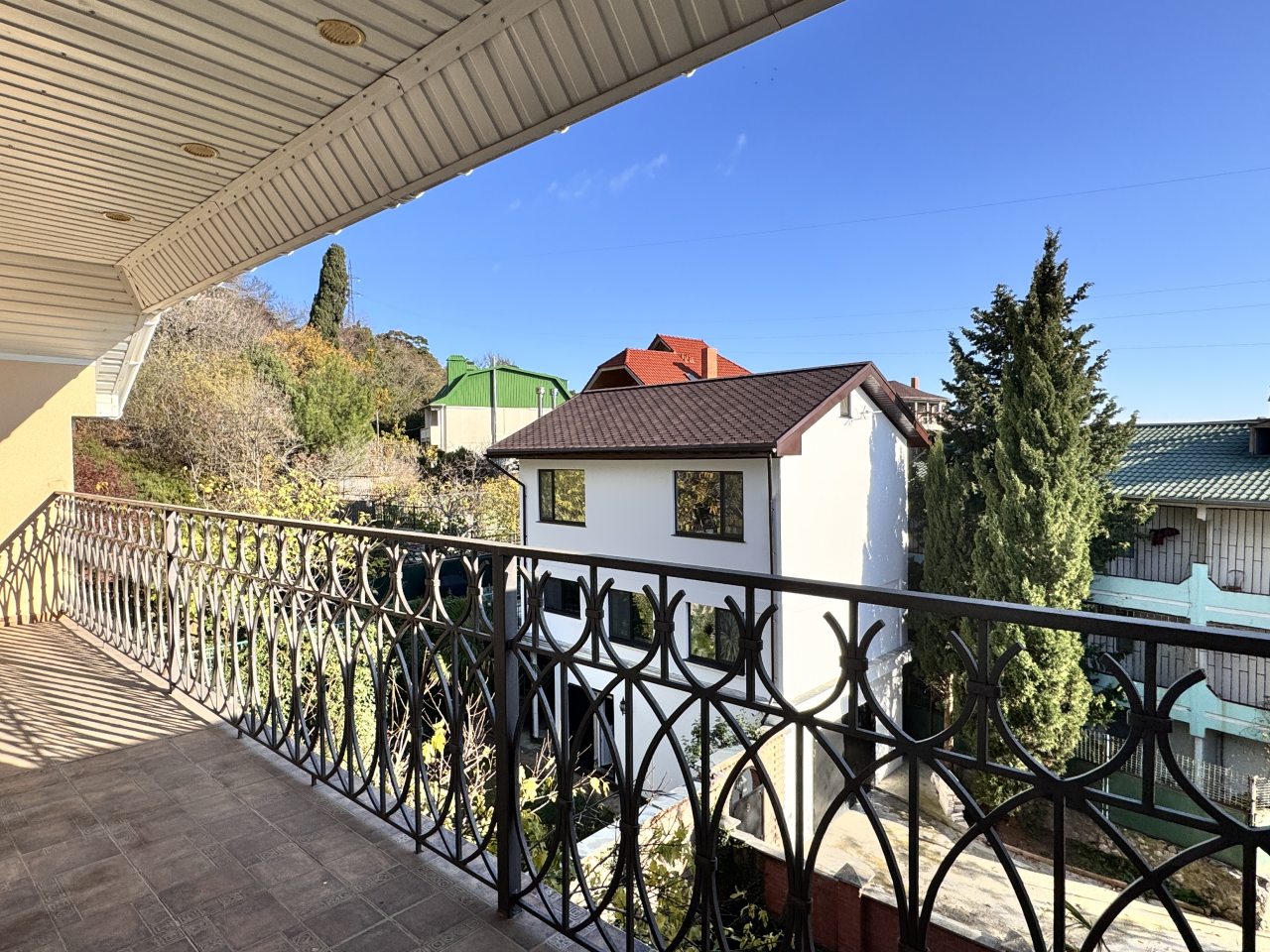Великолепная вилла в Ялте! Собирались здесь большой компанией друзей на день рождения друга. Отличный вариант для размещения большого количества гостей - тут 16 спальных мест, просторные интерьеры, много посуды и столовых приборов. Несмотря на громадные размеры дома, везде было очень чисто, здесь прекрасно убирают. Удобно находится, специально искали подальше от туристических мест для спокойного отдыха.